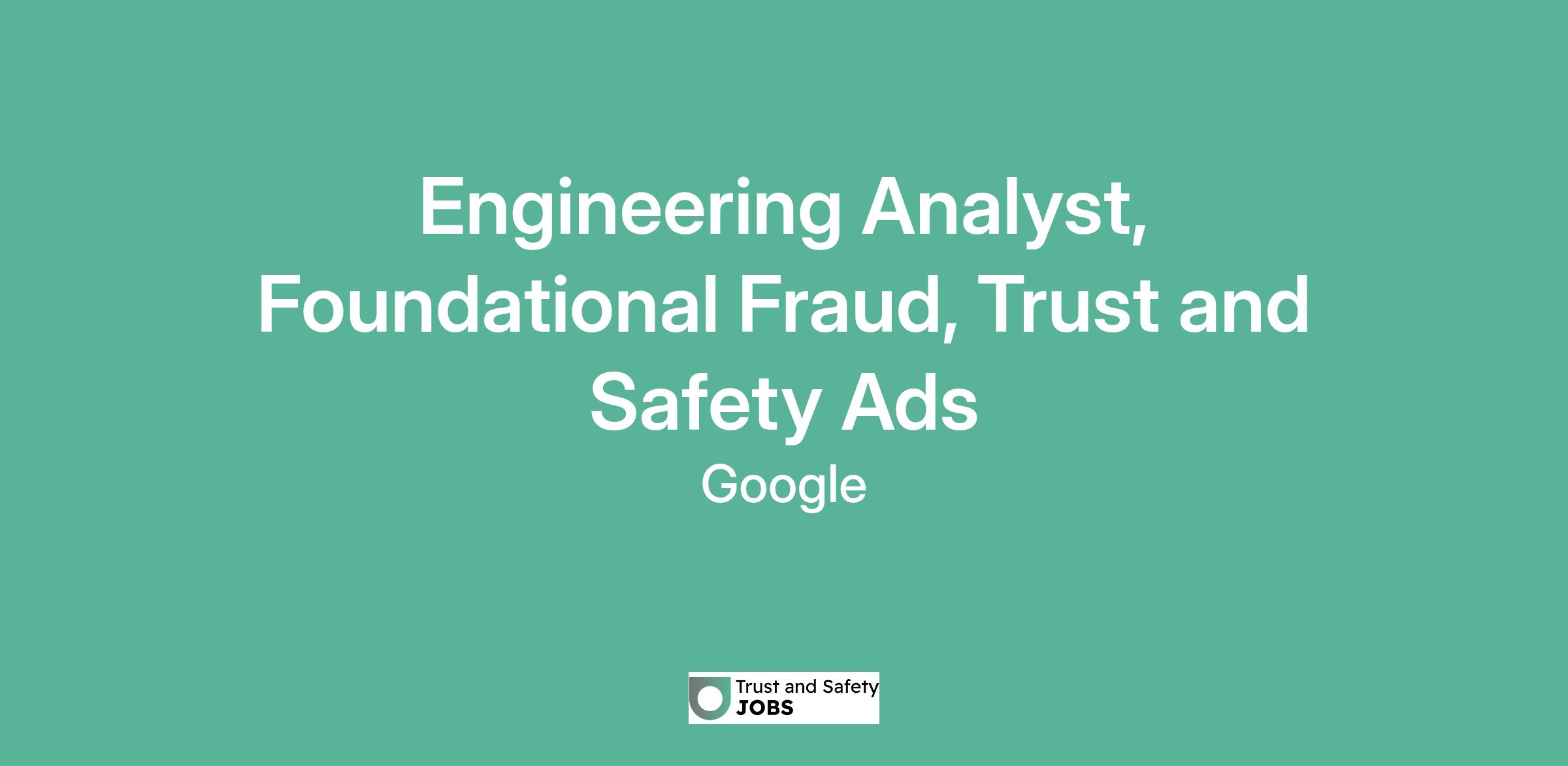 Engineering Analyst, Foundational Fraud, Trust and Safety Ads