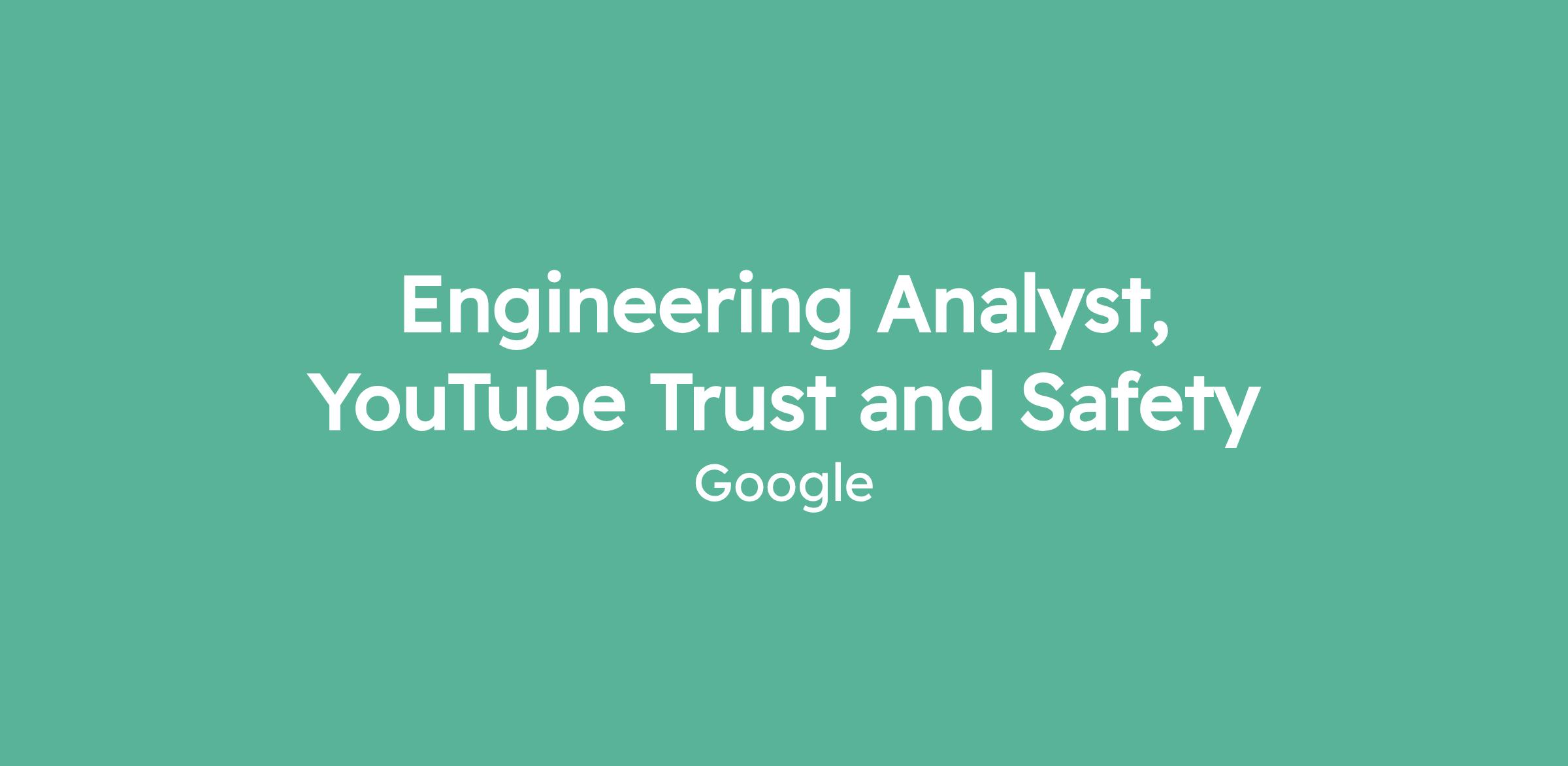 As an Engineering Analyst, you are passionate about technologies and have experience with analyzing data and scaled systems of review. You will grow in a fast, dynamic, demanding environment where no two days are ever the same. You will be a key contributor, independent, critical thinker with sound metrics judgment who has a passion for solving technological challenges and setting scalable standards.At YouTube, we believe that everyone deserves to have a voice, and that the world is a better place when we share, and build community through our stories. We work together to give everyone the power to share their story, explore what they love, and connect with one another in the process. Working at the intersection of cutting-edge technology and boundless creativity, we move at the speed of culture with a shared goal to show people the world. We explore new ideas, solve real problems, and have fun — and we do it all together.