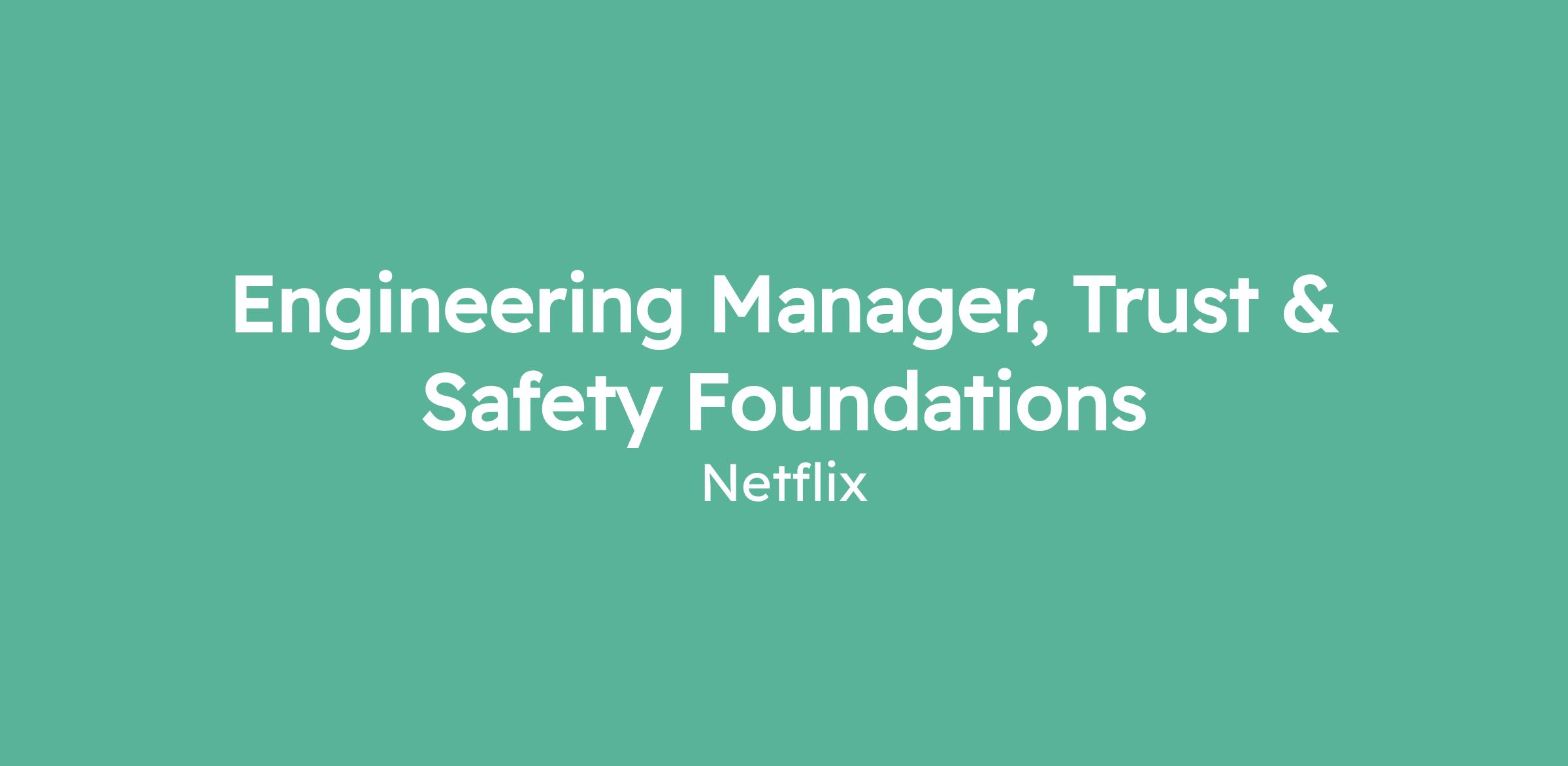 Engineering Manager, Trust & Safety Foundations