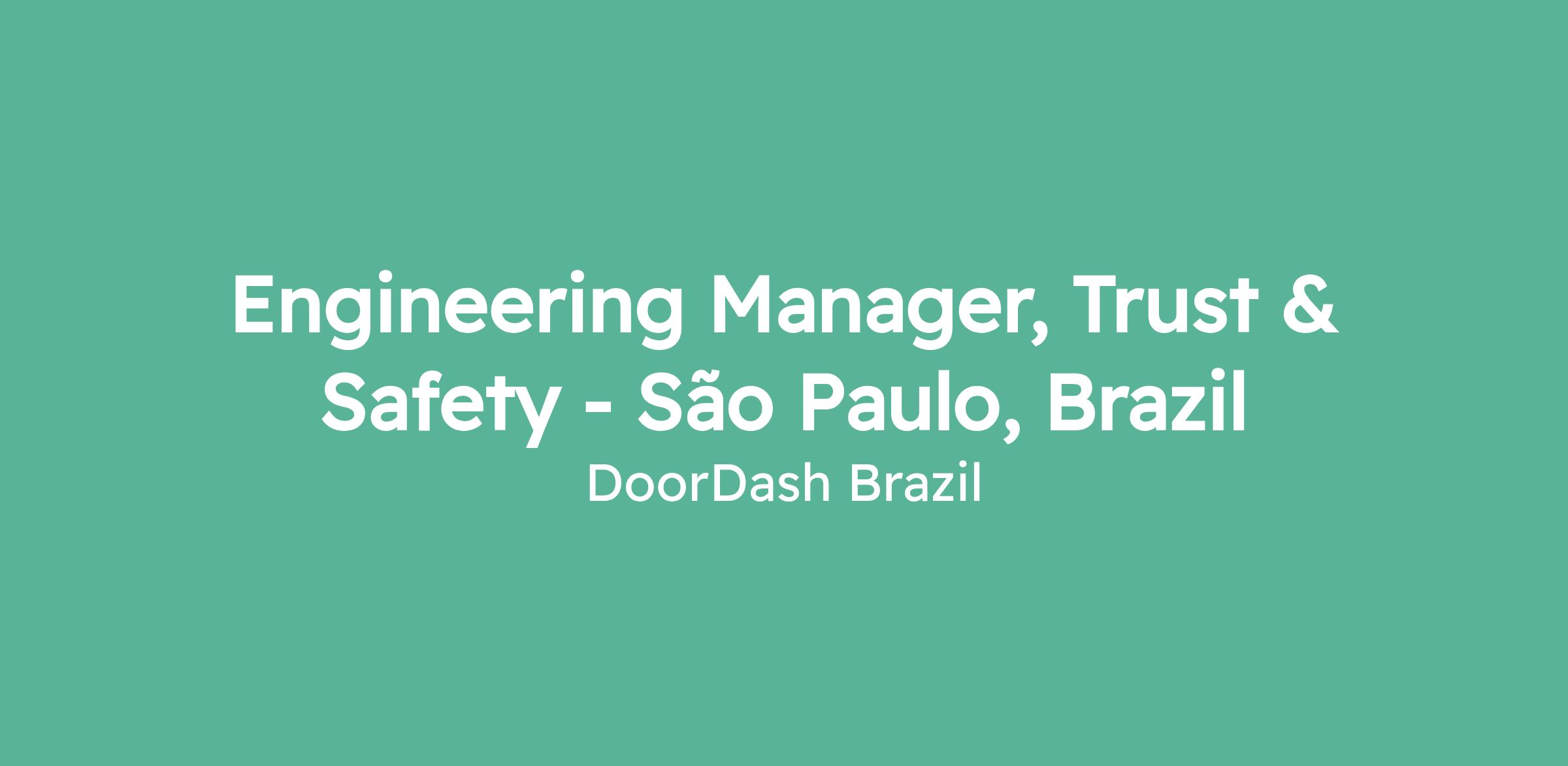 DoorDash is building the world's most reliable on-demand logistics engine for delivery! We're looking for an Engineering Manager to join our Trust & Safety team in our São Paulo engineering hub to lead a team that builds the systems keeping DoorDash's marketplace safe and trustworthy for consumers, merchants, and dashers worldwide.