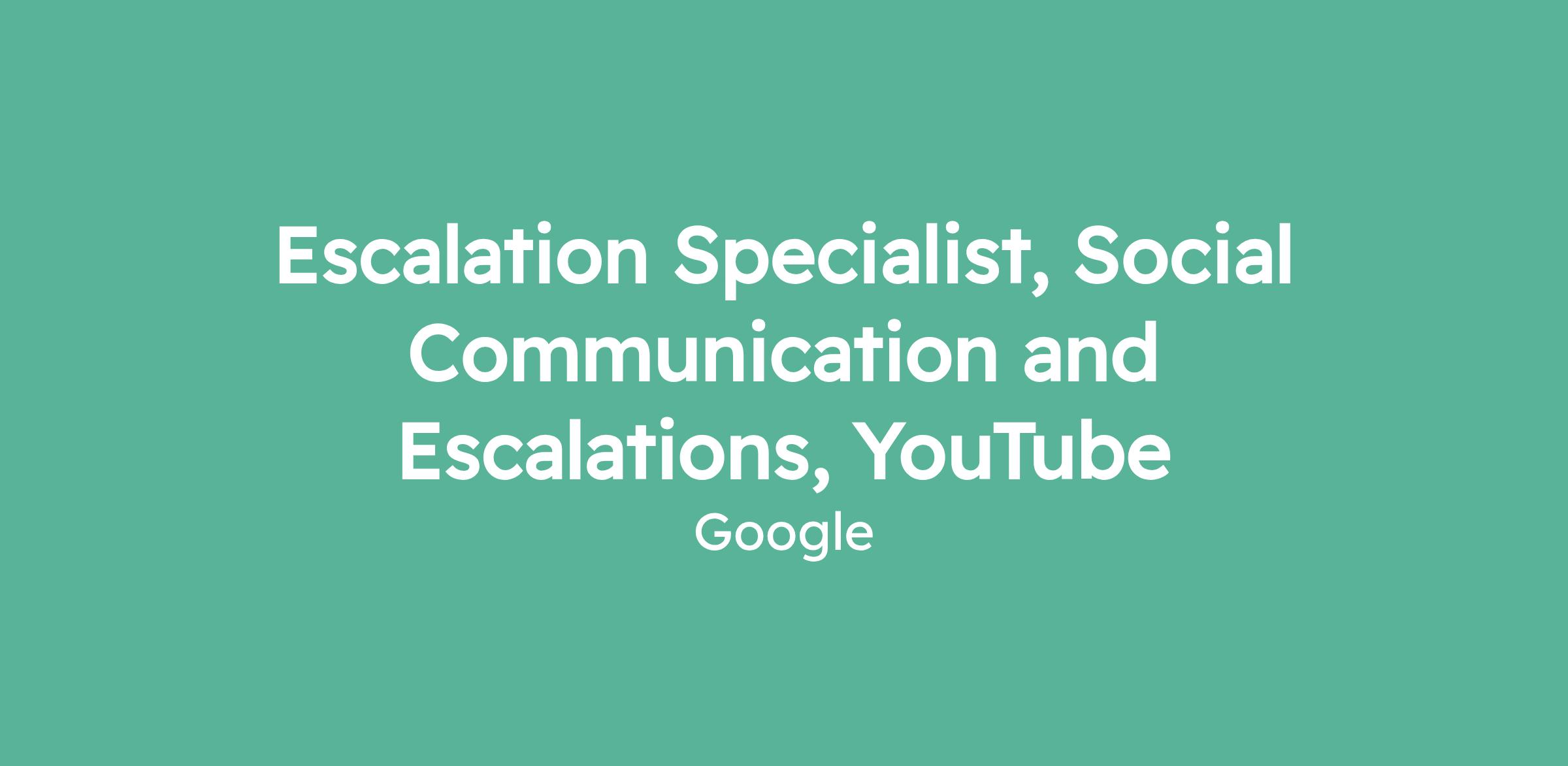 Escalation Specialist, Social Communication and Escalations, YouTube