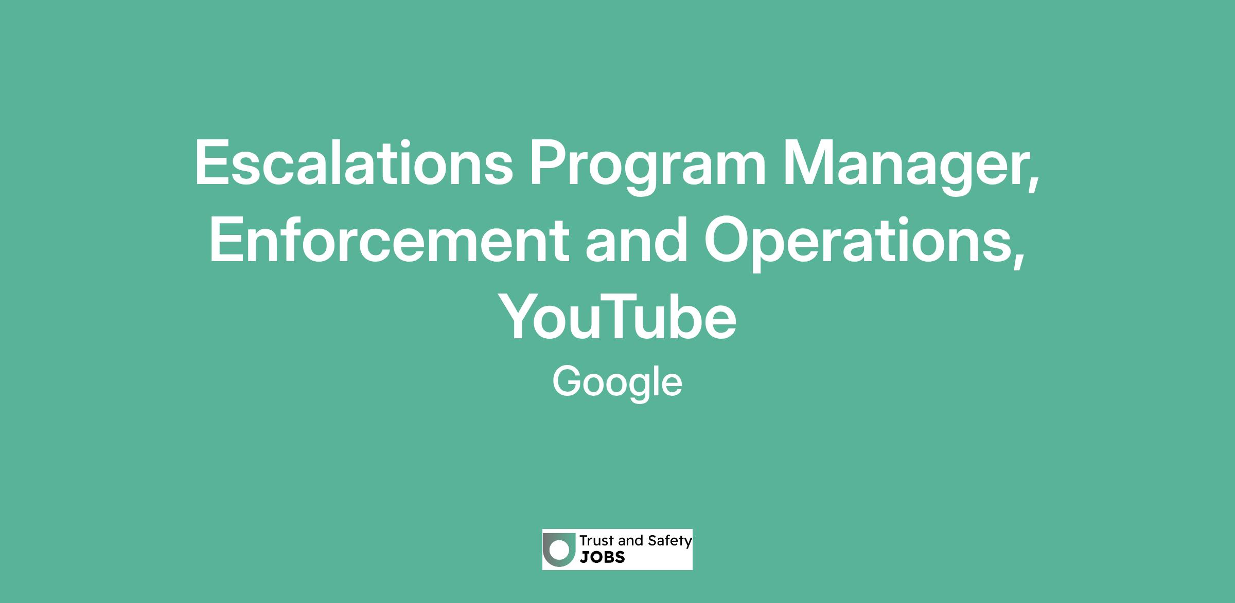 Escalations Program Manager, Enforcement and Operations, YouTube