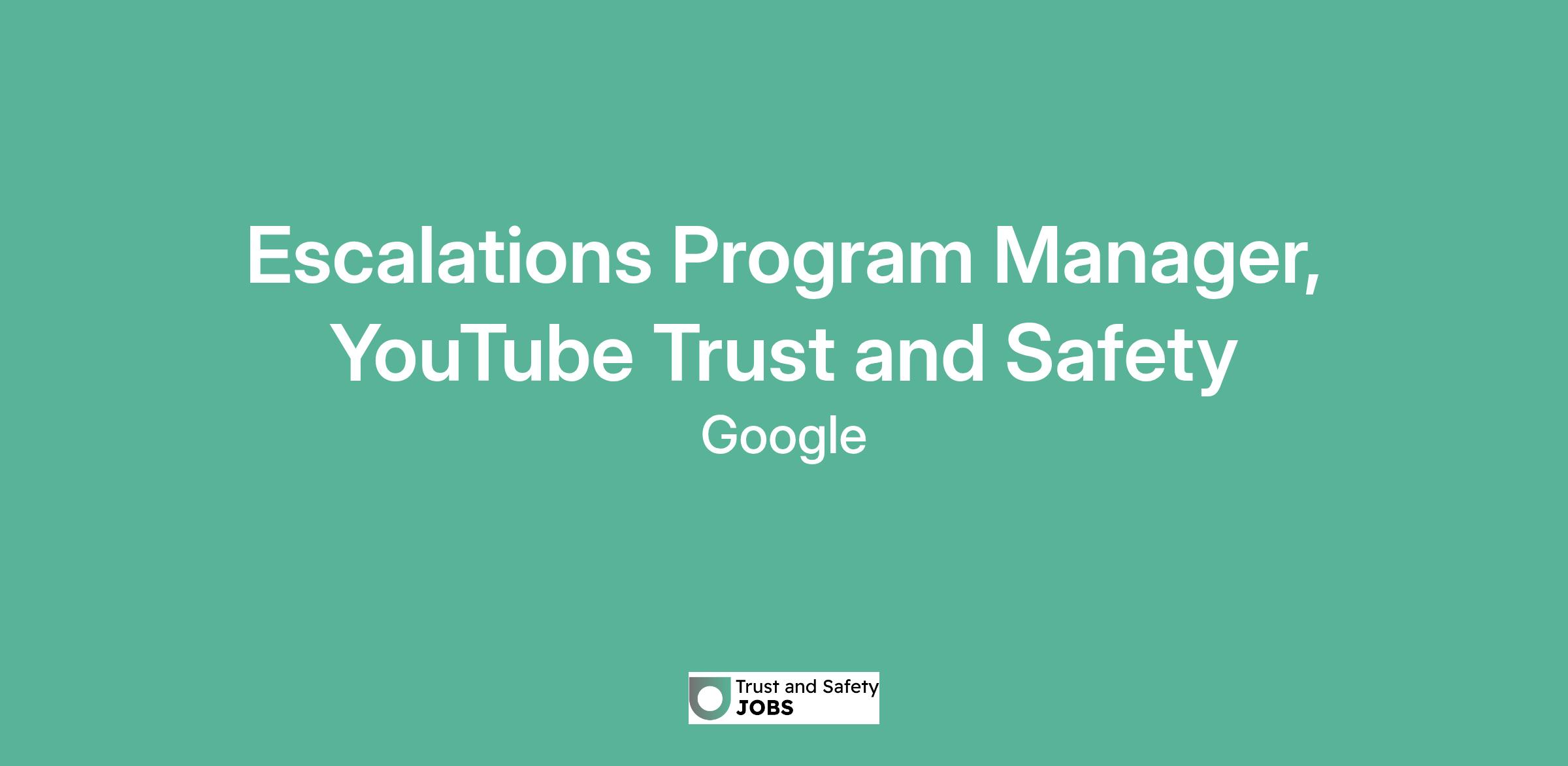 Escalations Program Manager, YouTube Trust and Safety