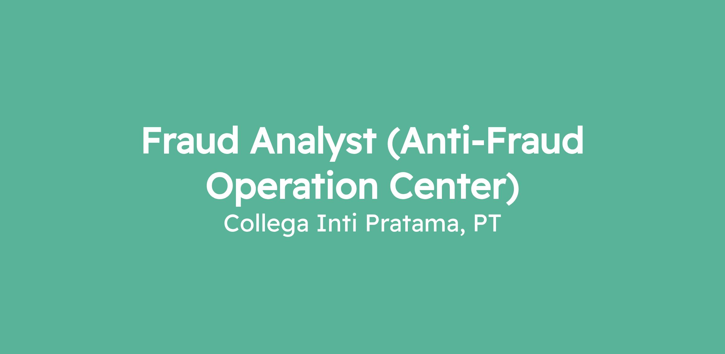 Fraud Analyst (Anti-Fraud Operation Center)
