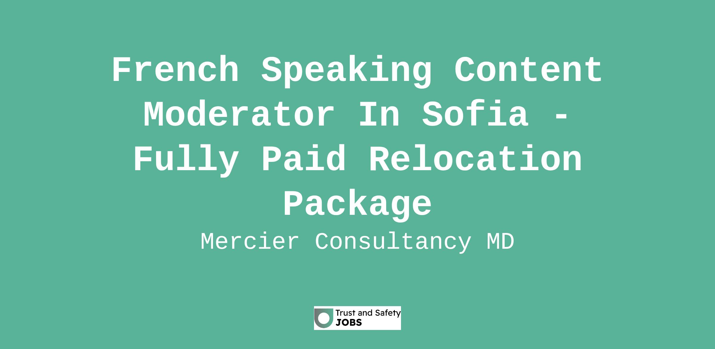 Mercier Consultancy MD is seeking a French Speaking Content Moderator to join our dynamic team in Sofia, Bulgaria! This position comes with a fully paid relocation package, providing an excellent opportunity for those looking to expand their horizons while working in a vibrant city. As a Content Moderator, you will be responsible for reviewing user-generated content to ensure it aligns with our community standards, helping to create a safe online experience for our French-speaking users.