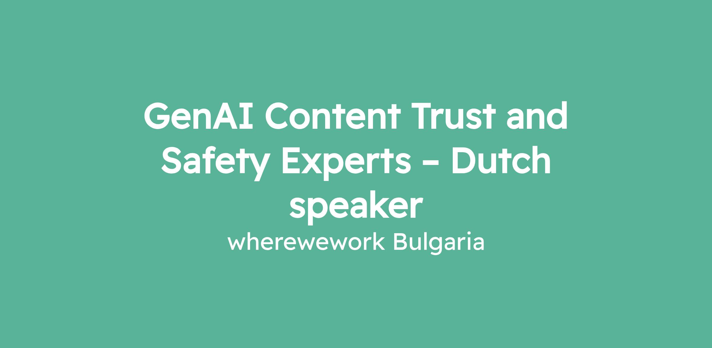 GenAI Content Trust and Safety Experts – Dutch speaker