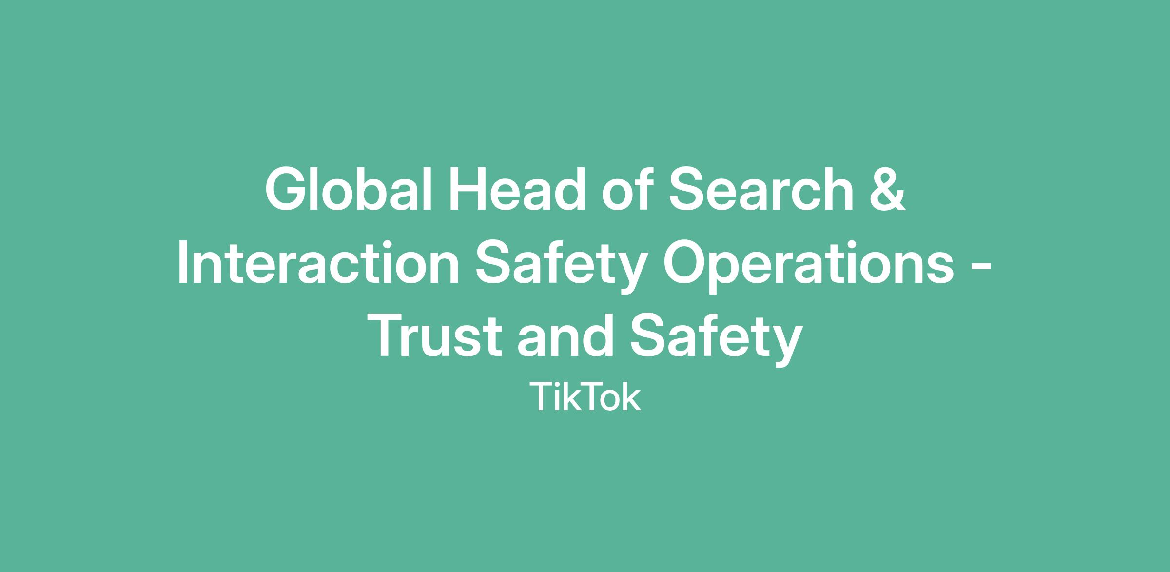 Global Head of Search & Interaction Safety Operations - Trust and Safety