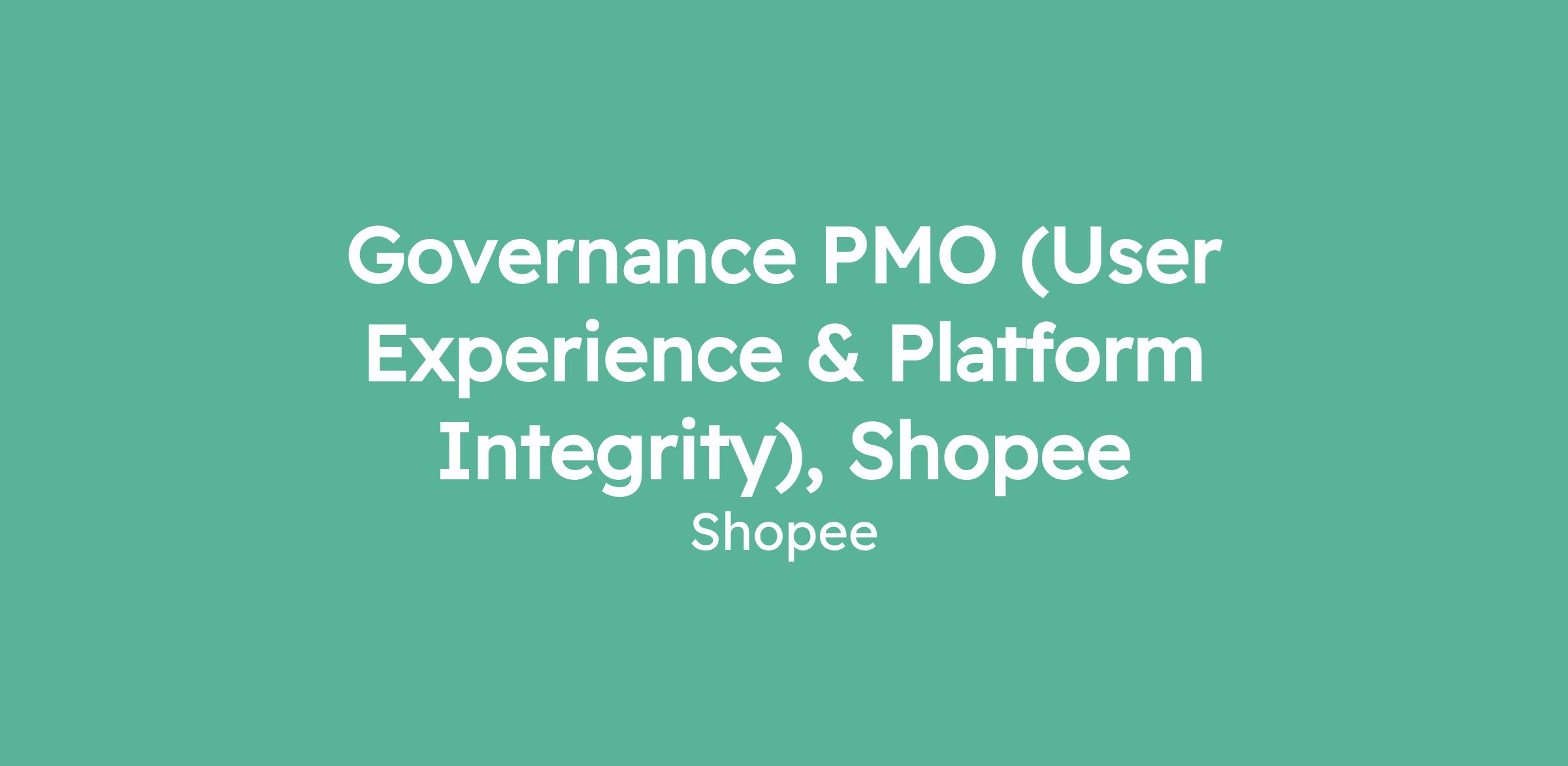 Governance PMO (User Experience & Platform Integrity), Shopee