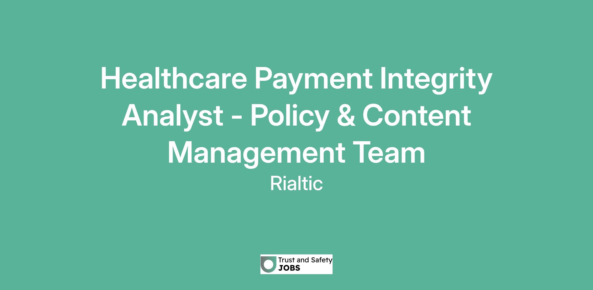Healthcare Payment Integrity Analyst - Policy & Content Management Team