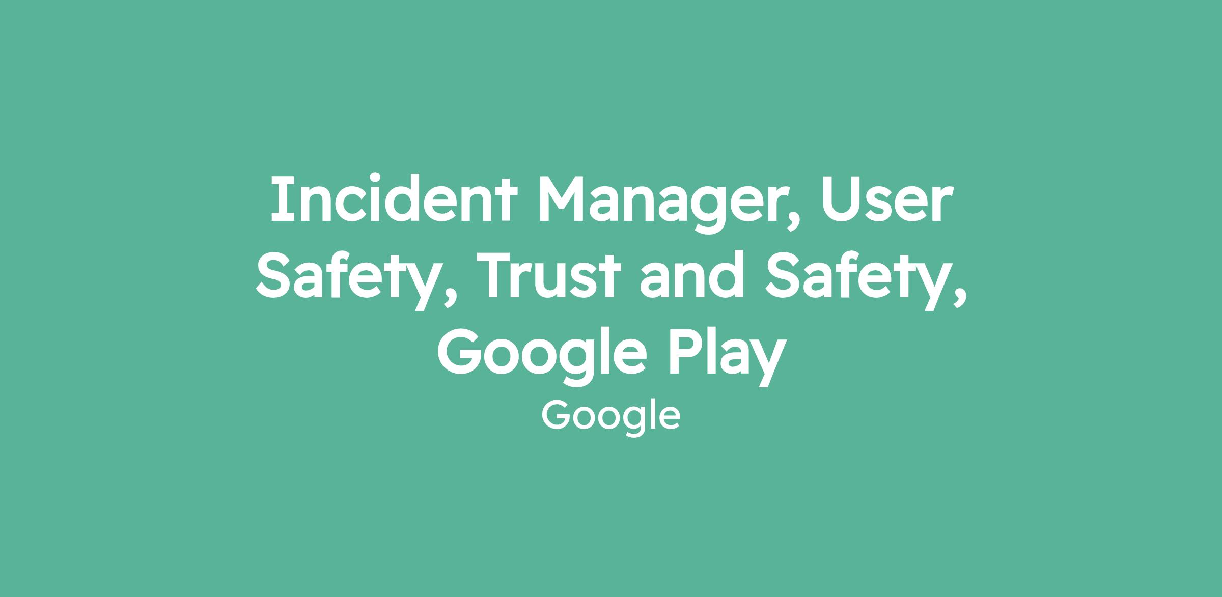 Incident Manager, User Safety, Trust and Safety, Google Play