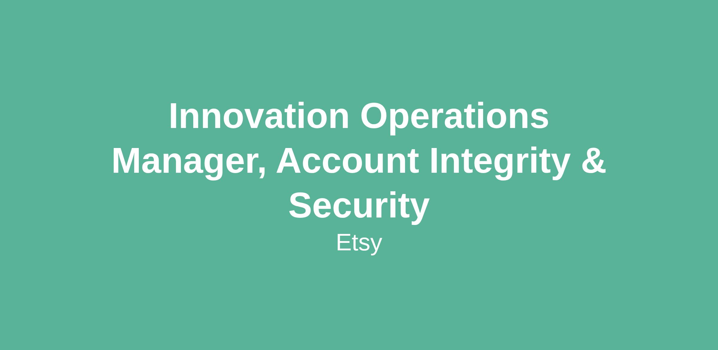 Innovation Operations Manager, Account Integrity & Security