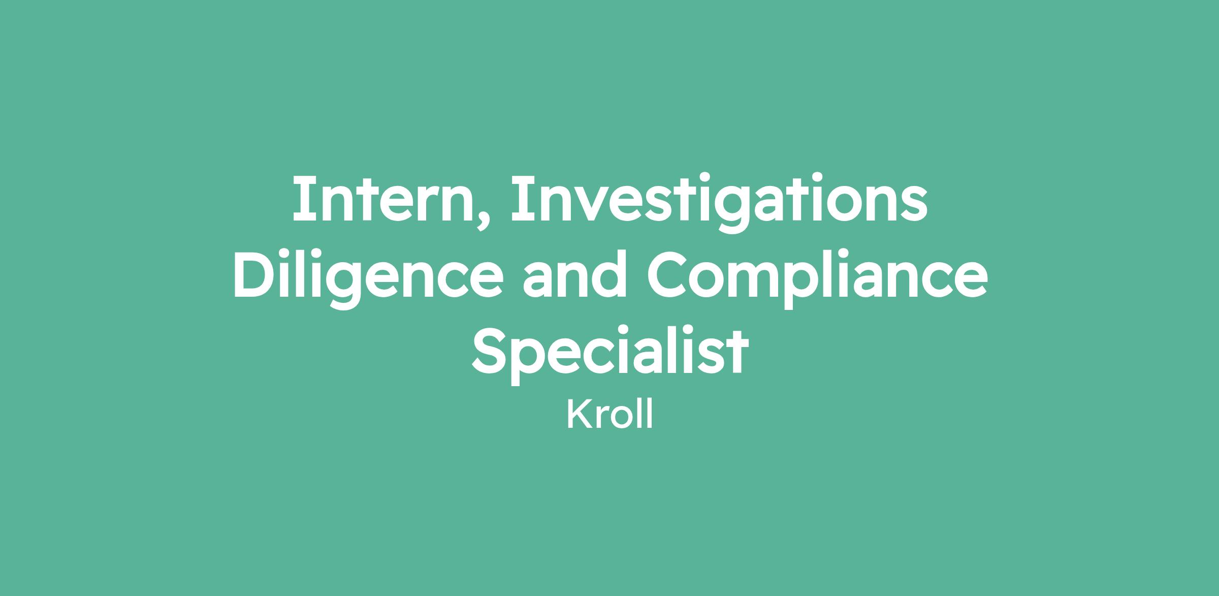 Intern, Investigations Diligence and Compliance Specialist