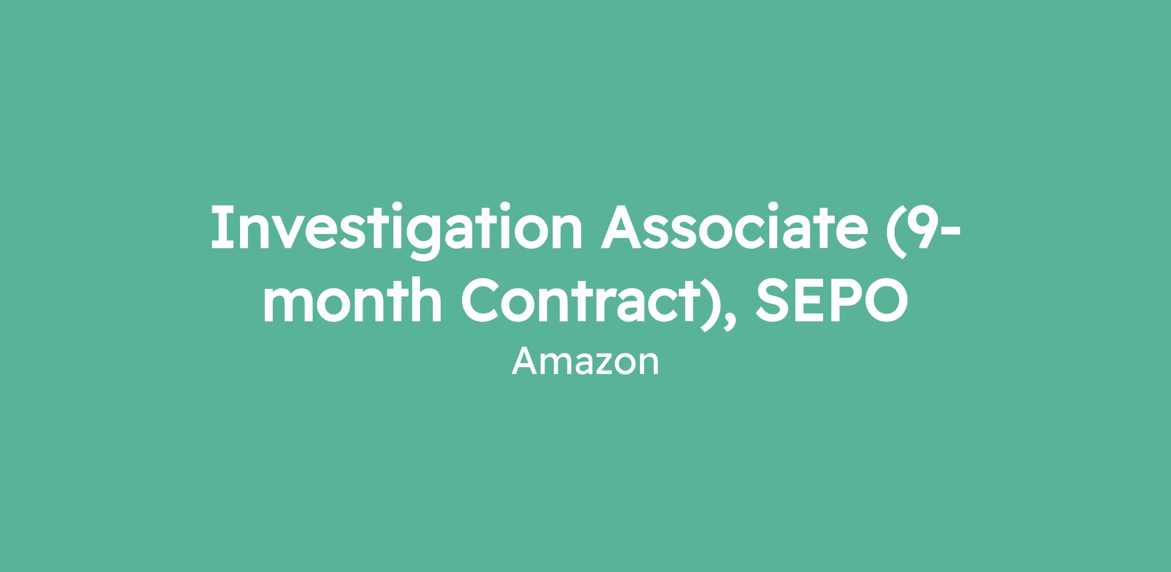 Investigation Associate (9-month Contract), SEPO