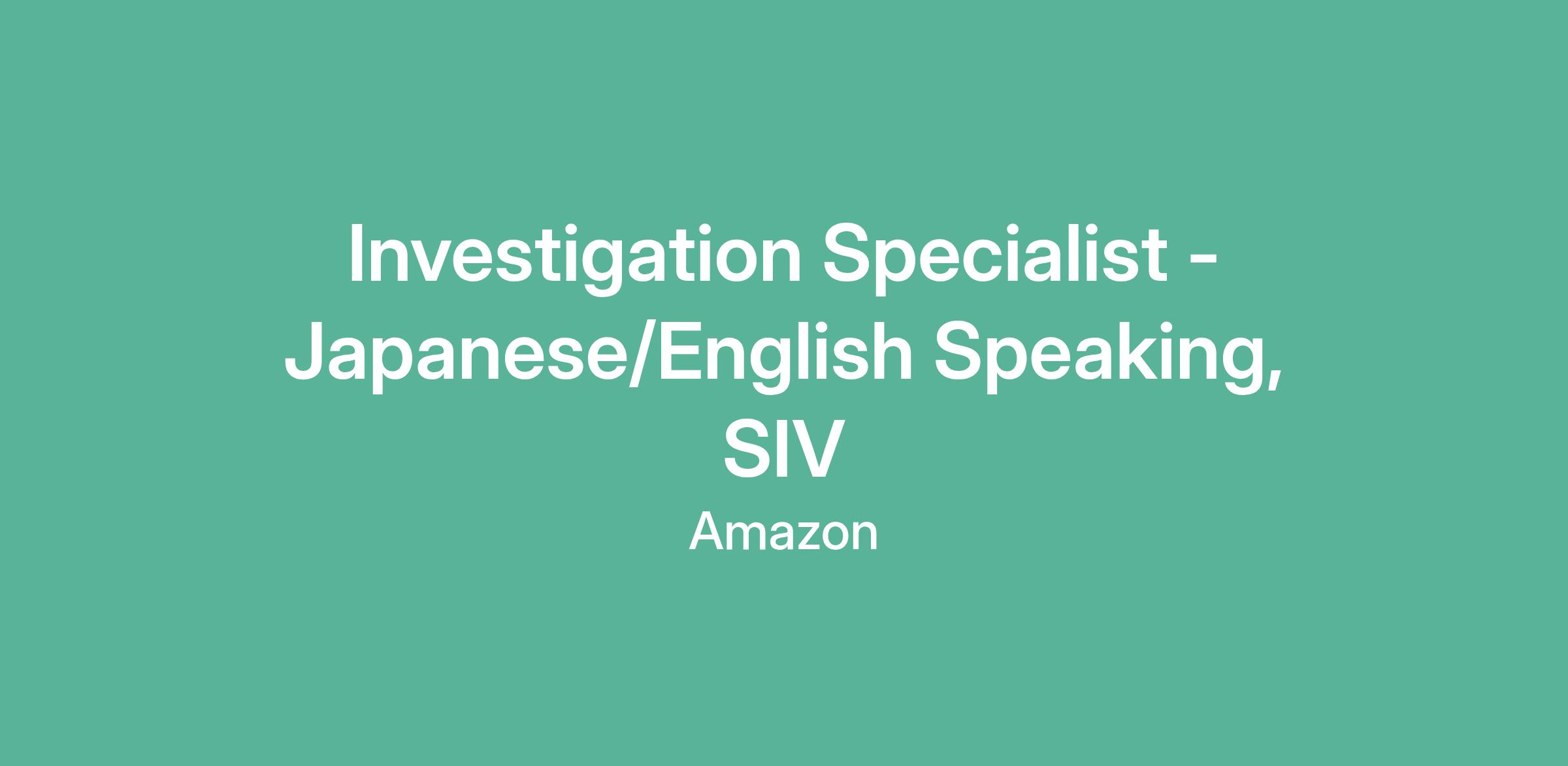 Investigation Specialist - Japanese/English Speaking, SIV