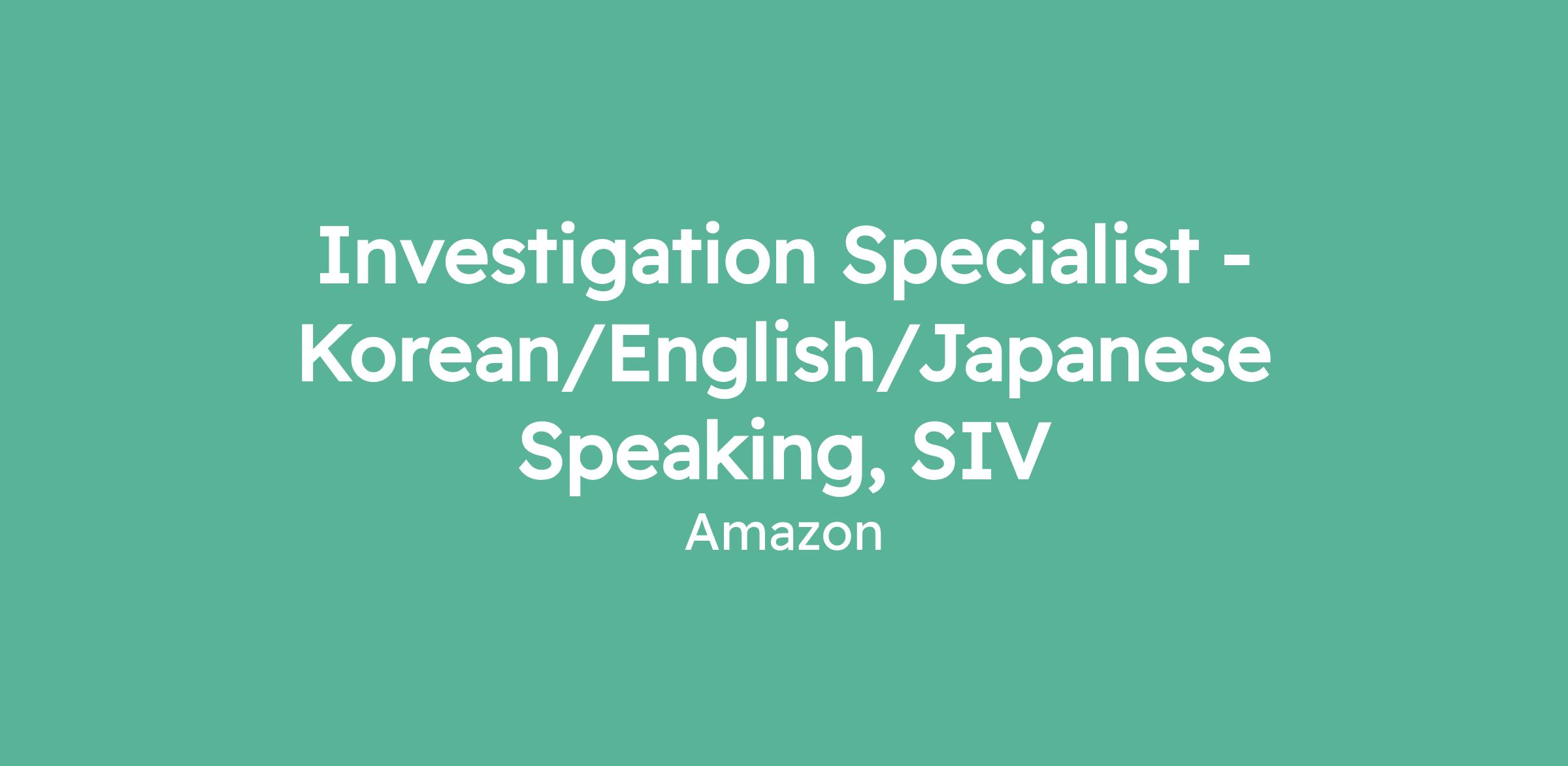 Investigation Specialist - Korean/English/Japanese Speaking, SIV