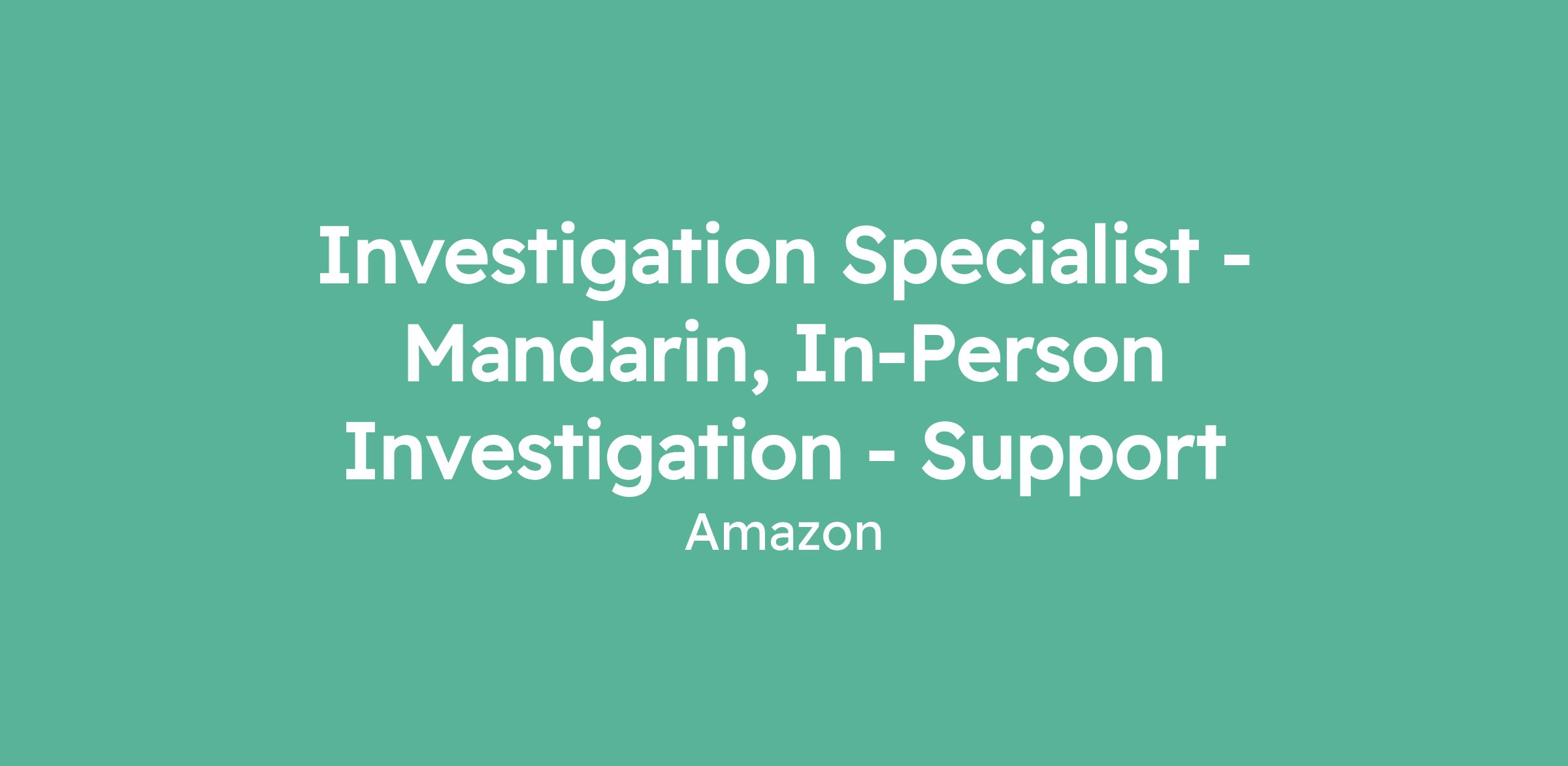 Investigation Specialist - Mandarin, In-Person Investigation - Support