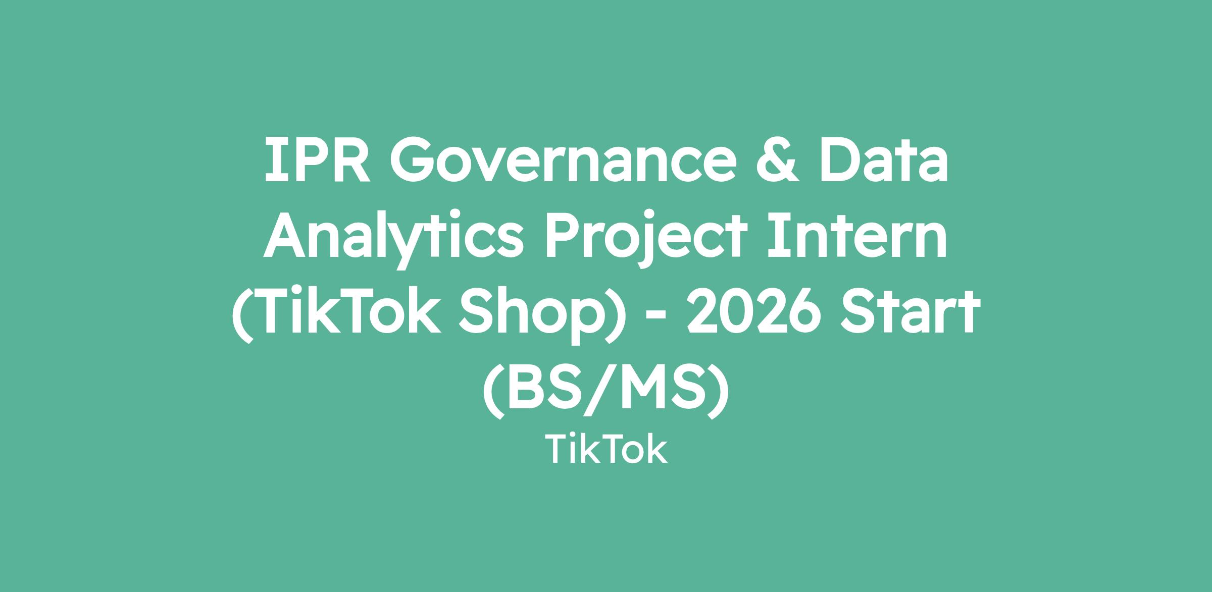 IPR Governance & Data Analytics Project Intern (TikTok Shop) - 2026 Start (BS/MS)