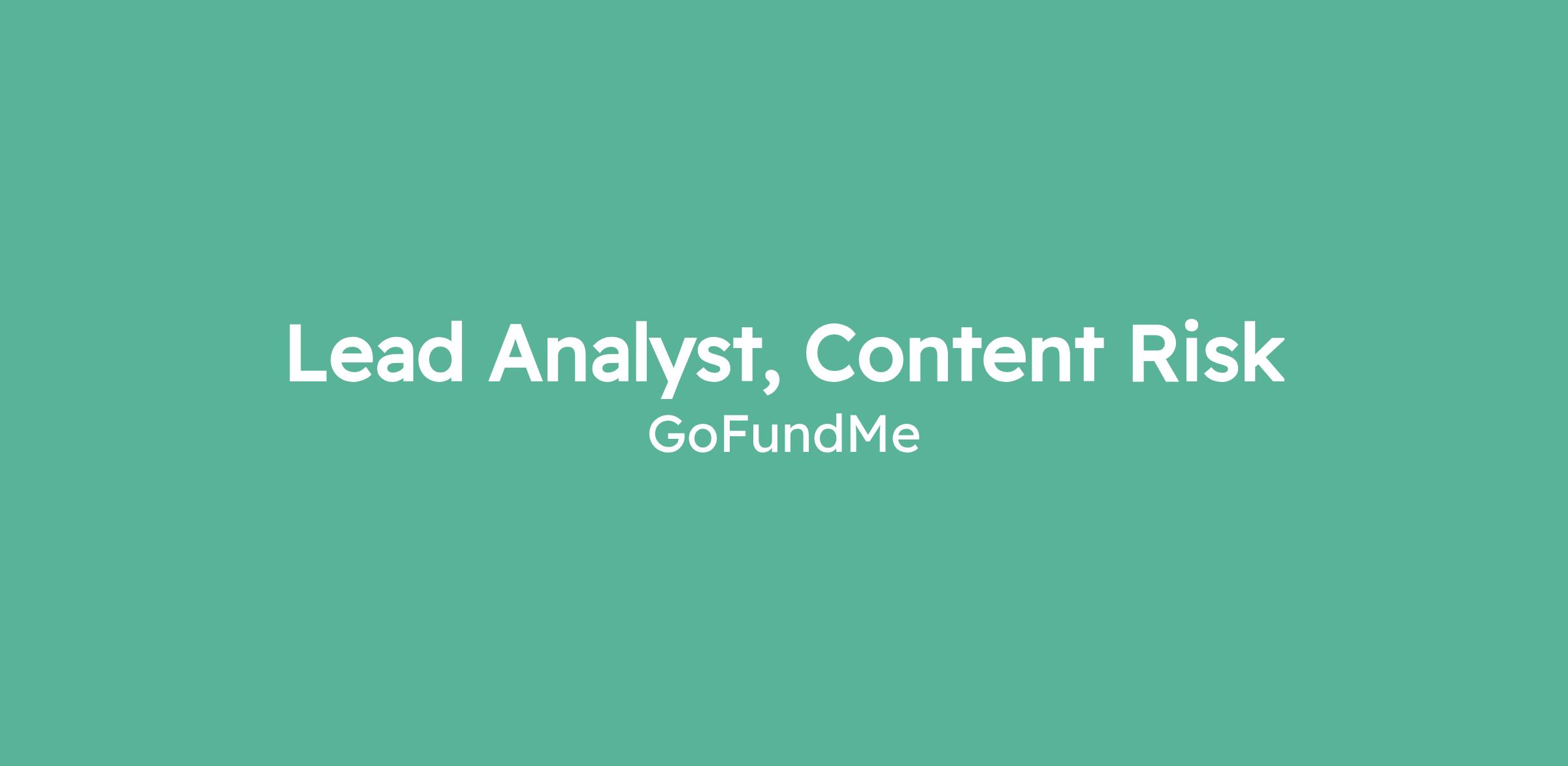 Join us! The GoFundMe team is searching for our next Content Risk Lead Analyst to join our growing Trust & Safety team. This role plays a critical part in protecting our customers from fraud and misuse while ensuring GoFundMe remains a safe and trusted platform. Lead Analysts operate as leaders and subject matter experts, driving operational excellence, cross-functional collaboration, and high-impact initiatives that safeguard our community and brand.