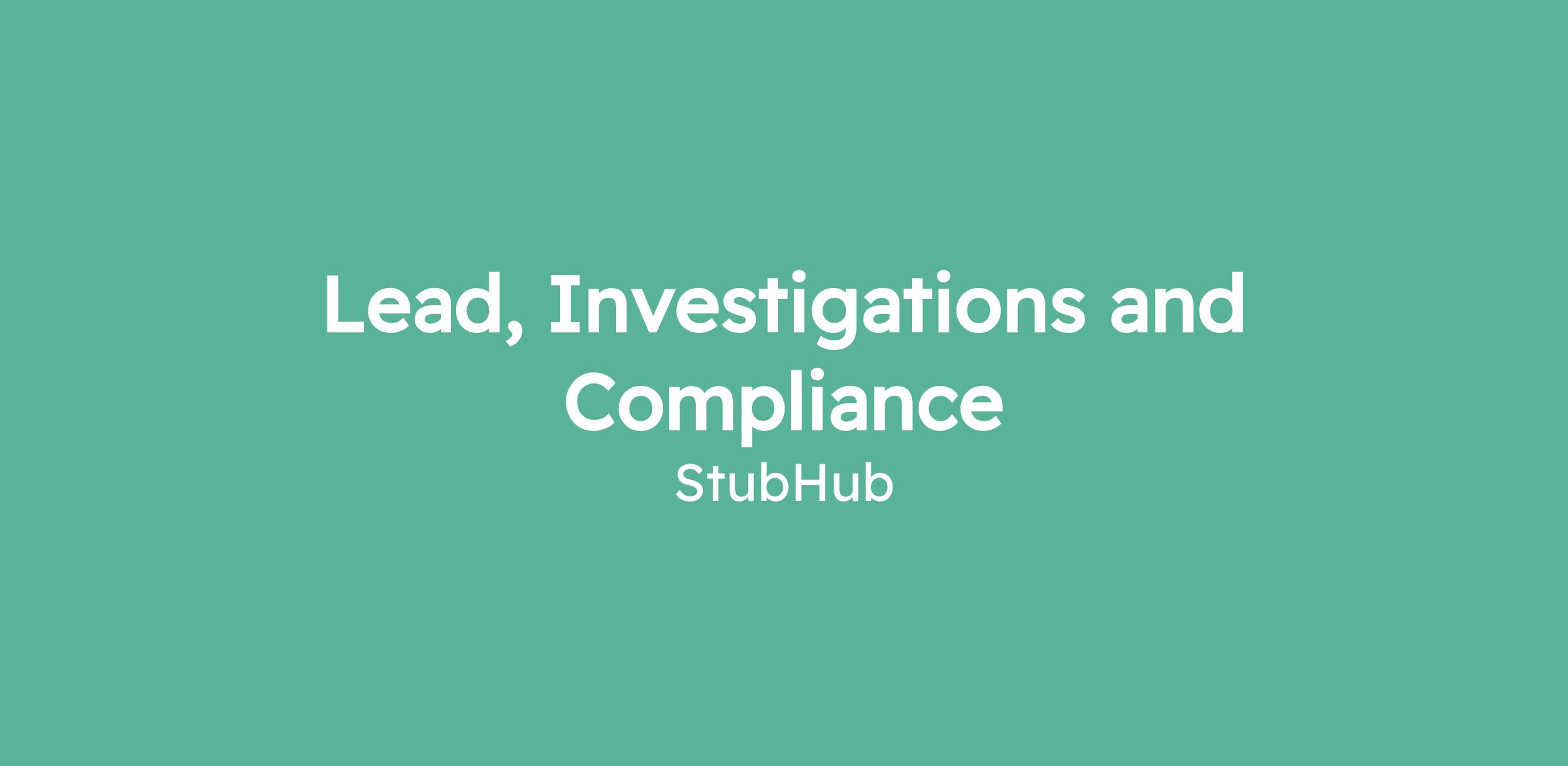 The Investigations and Compliance function sits alongside Legal, Trust and Safety, Payments, and InfoSec to ensure StubHub can operate safely, compliantly, and resiliently as a global marketplace. The team’s mission is to respond effectively to serious incidents, mitigate enterprise risk, and translate investigative learnings into durable controls that protect the business, employees, and fans while enabling growth. The work is highly cross-functional, externally facing, and deeply embedded in moments that matter most to the company.