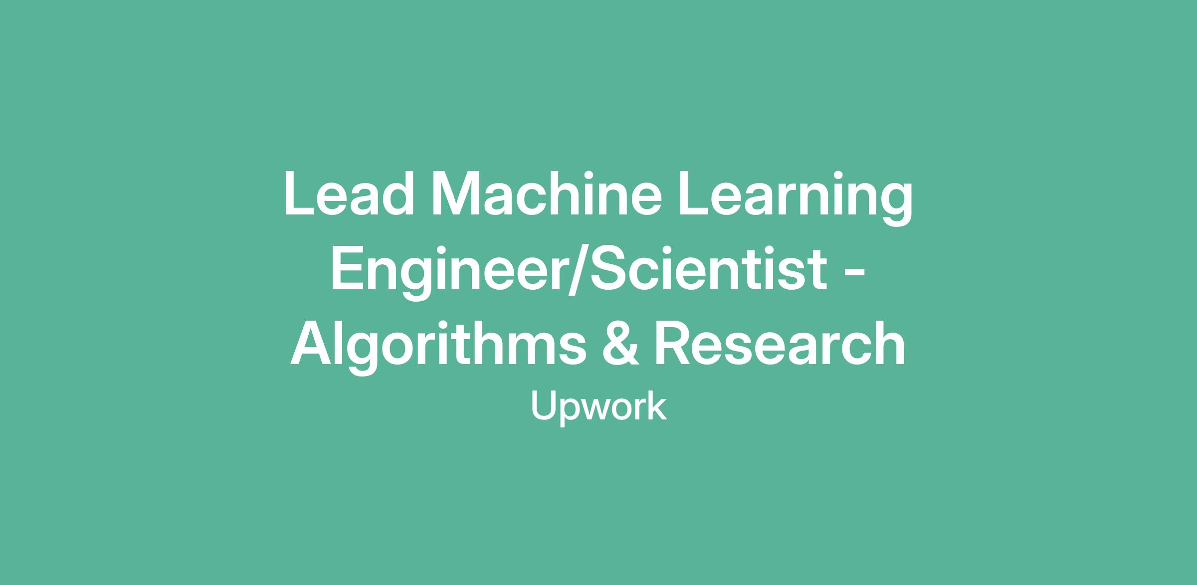 Lead Machine Learning Engineer/Scientist - Algorithms & Research