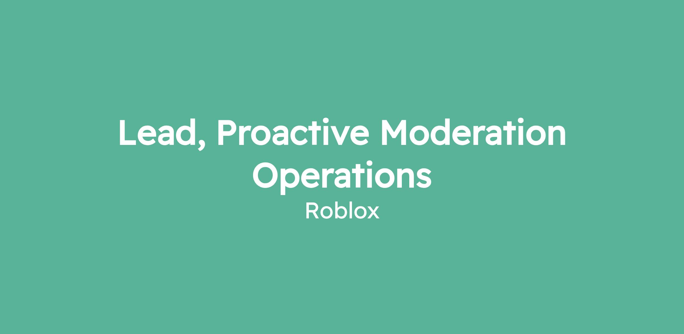 Lead, Proactive Moderation Operations