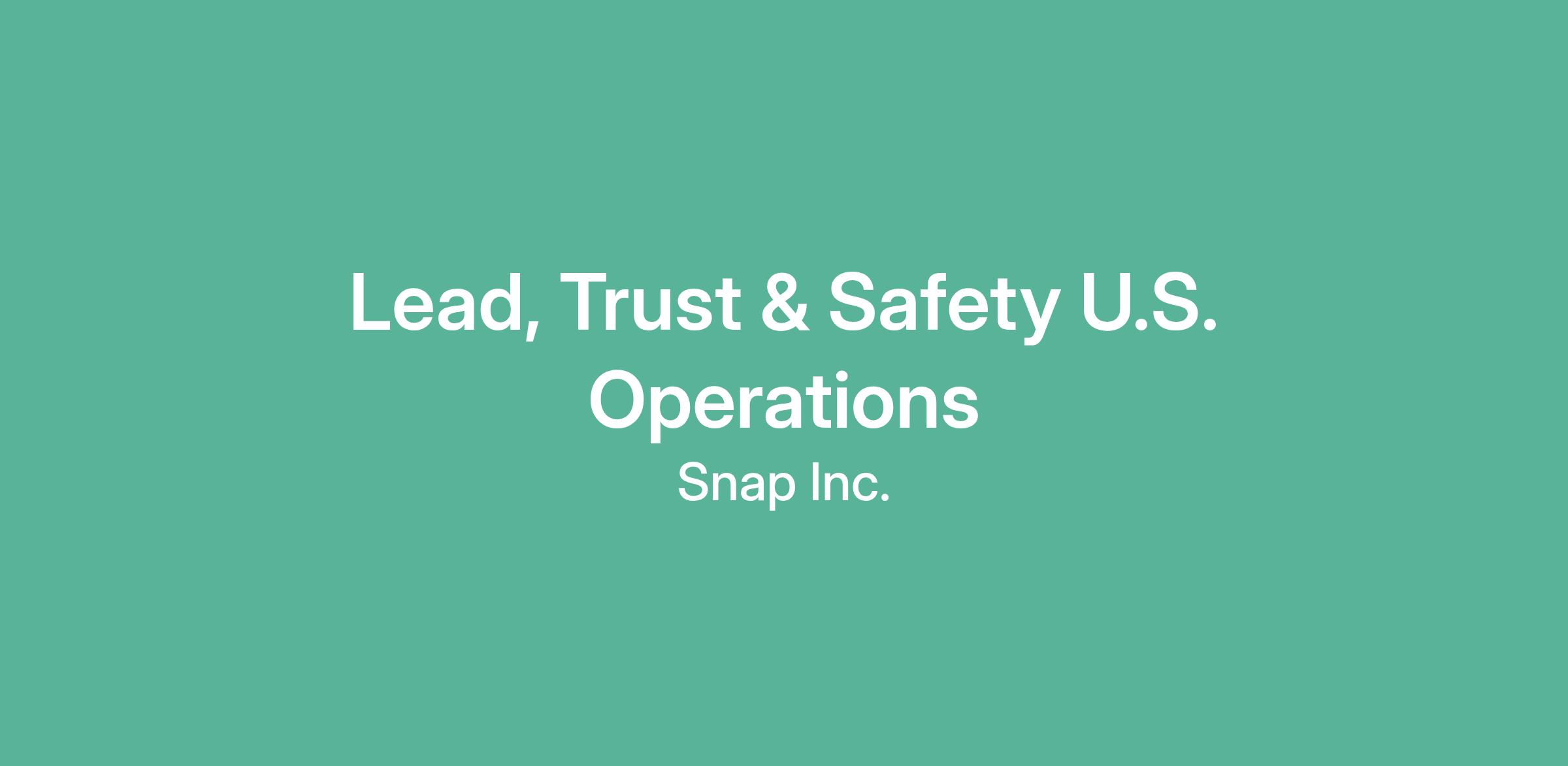 We’re looking for a Trust & Safety Lead, U.S. Operations to join our Safety Operations team at Snap Inc!