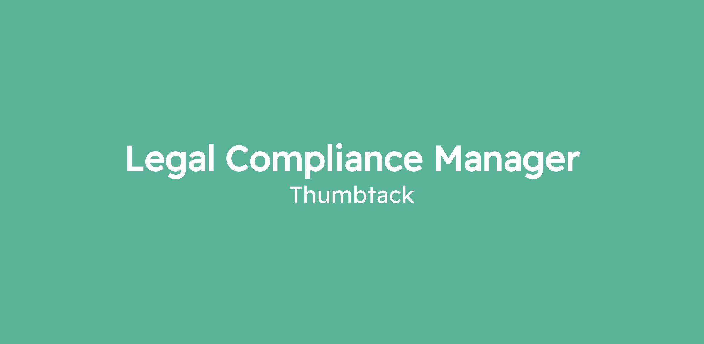 As Legal Compliance Manager, you will lead and mature Thumbtack’s privacy compliance program while supporting the development and execution of our AI compliance efforts during a period of rapid product evolution and increased AI adoption. This role sits within the Legal team and focuses on designing, operationalizing, and scaling compliance processes that align with our business model and evolving regulatory landscape. You will partner closely with Legal, Product, Engineering, and Operations to ensure compliance requirements are embedded into day-to-day operations and product development workflows. Your work will ensure our compliance program is measurable, durable, and built to scale alongside the business.