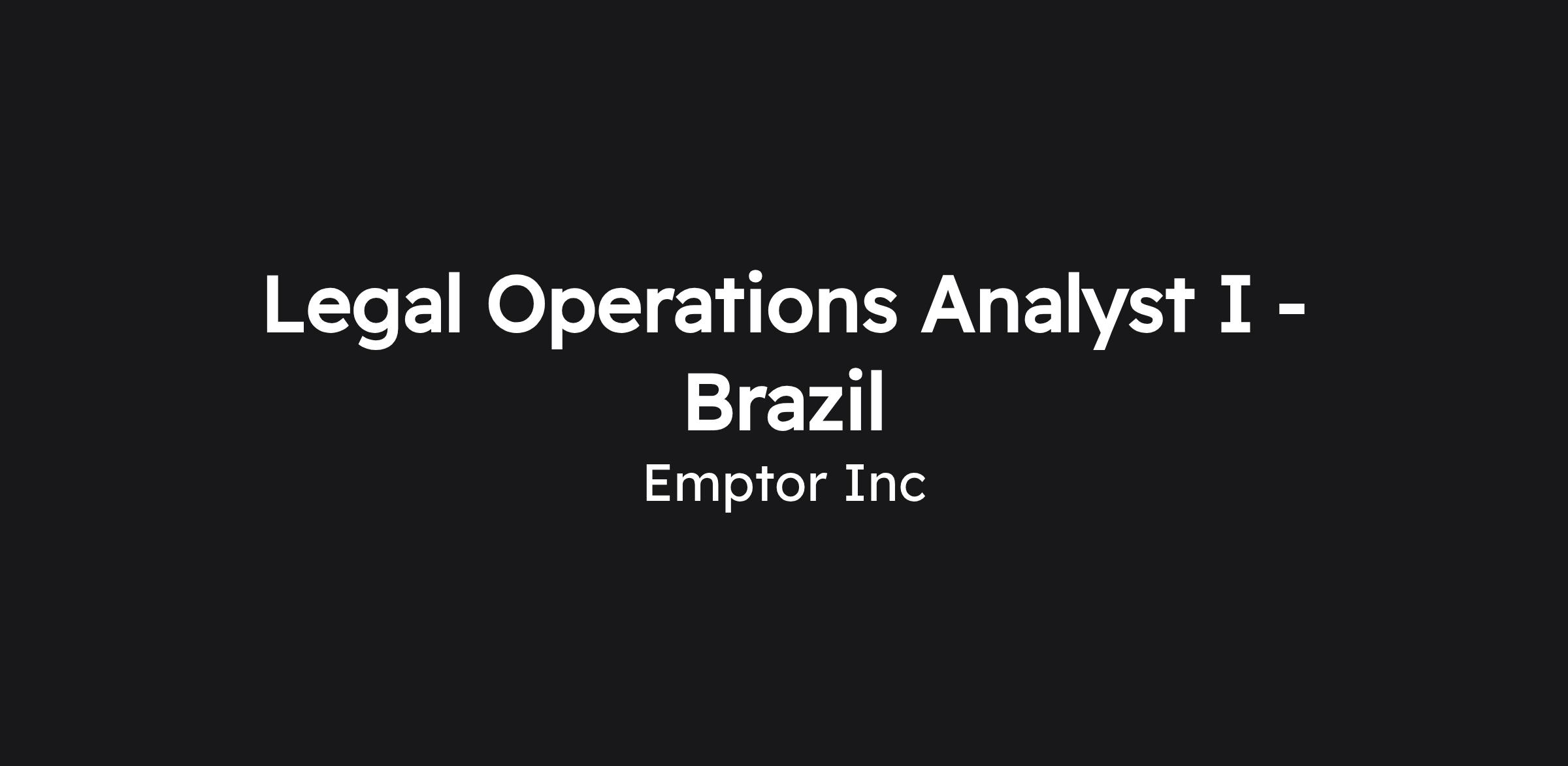 Legal Operations Analyst I - Brazil