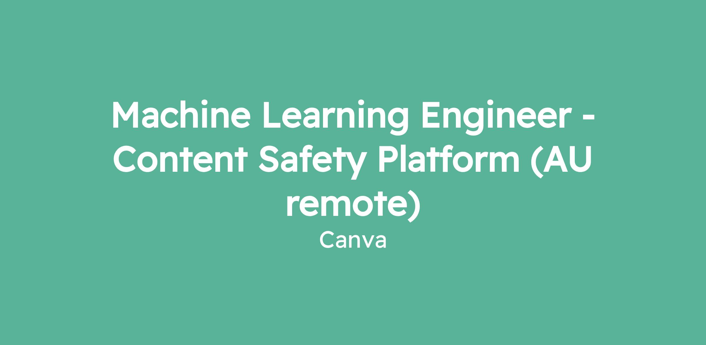 Machine Learning Engineer - Content Safety Platform (AU remote)