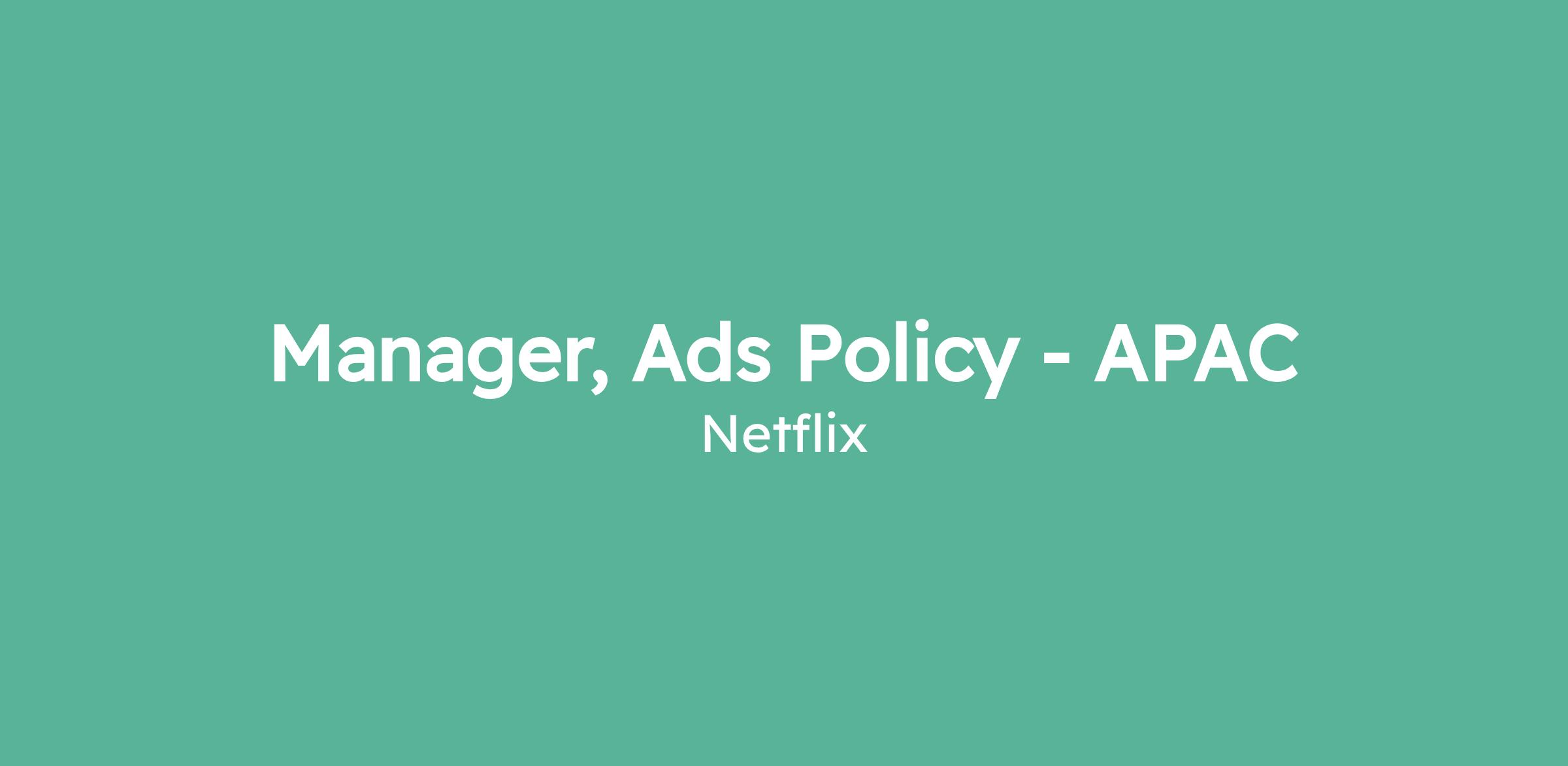 • Global & Regional Player. Ability to be an advocate for the specific needs of Ads Policy bringing a global lens, striking a balance between scalability, localization, and highly nuanced sensitivities and cultural perspectives within the APAC Ads Markets to drive meaningful ads policies for Netflix, our members and advertisers.