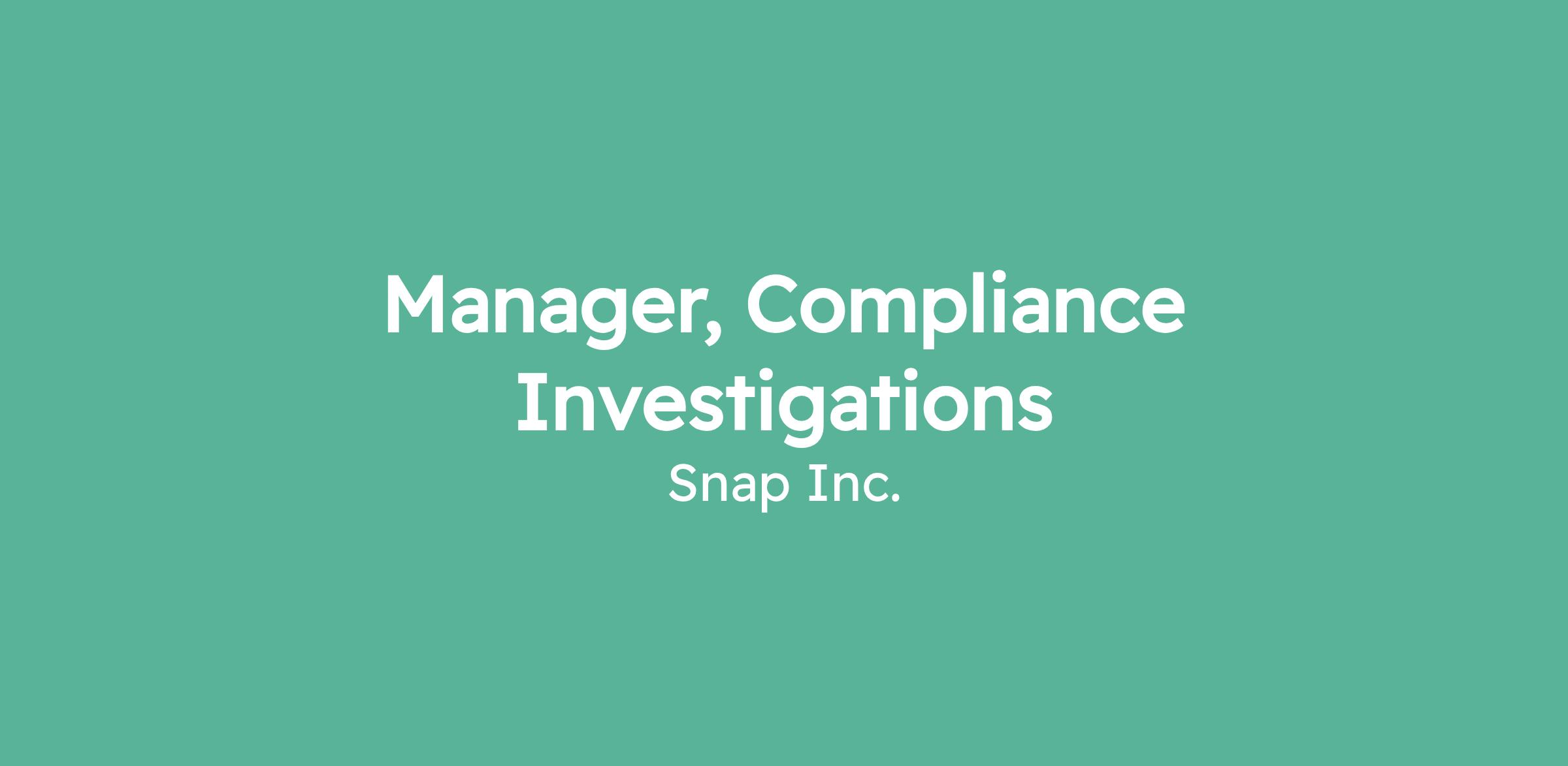 We’re looking for a Compliance Investigations Manager to join Snap’s Integrity & Compliance Team!