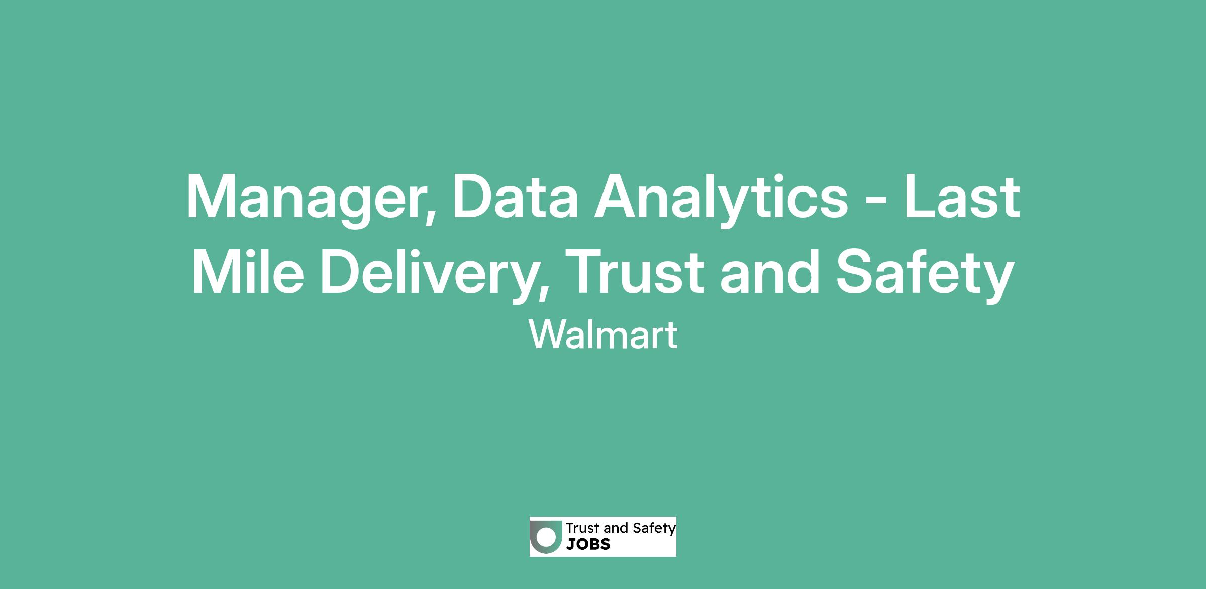 Manager, Data Analytics - Last Mile Delivery, Trust and Safety
