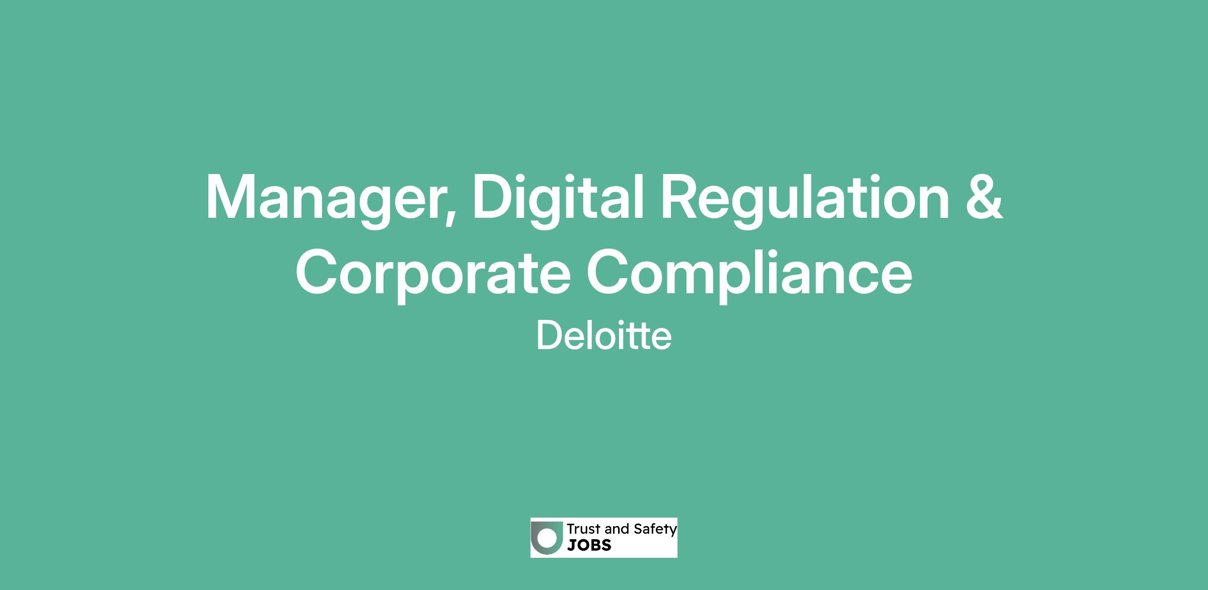 Manager, Digital Regulation & Corporate Compliance