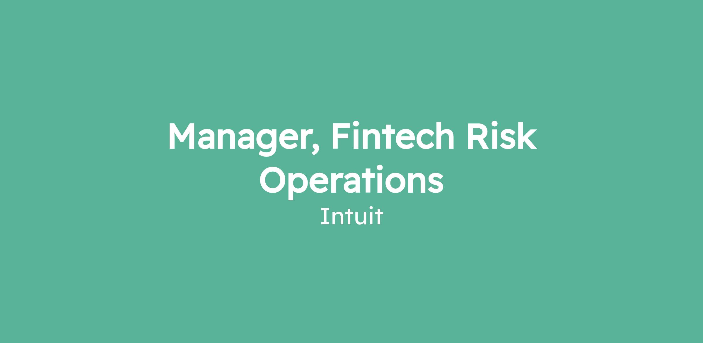 Manager, Fintech Risk Operations