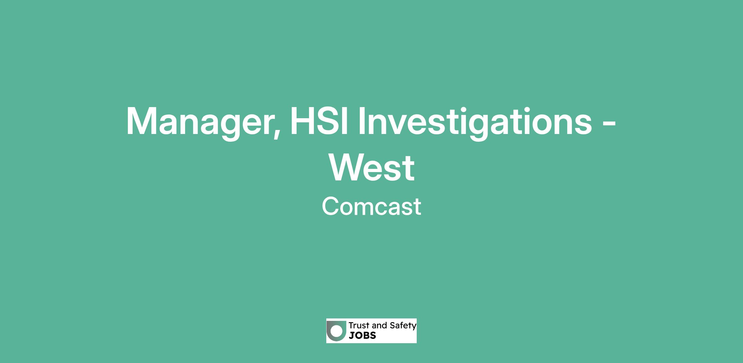 Manager, HSI Investigations - West