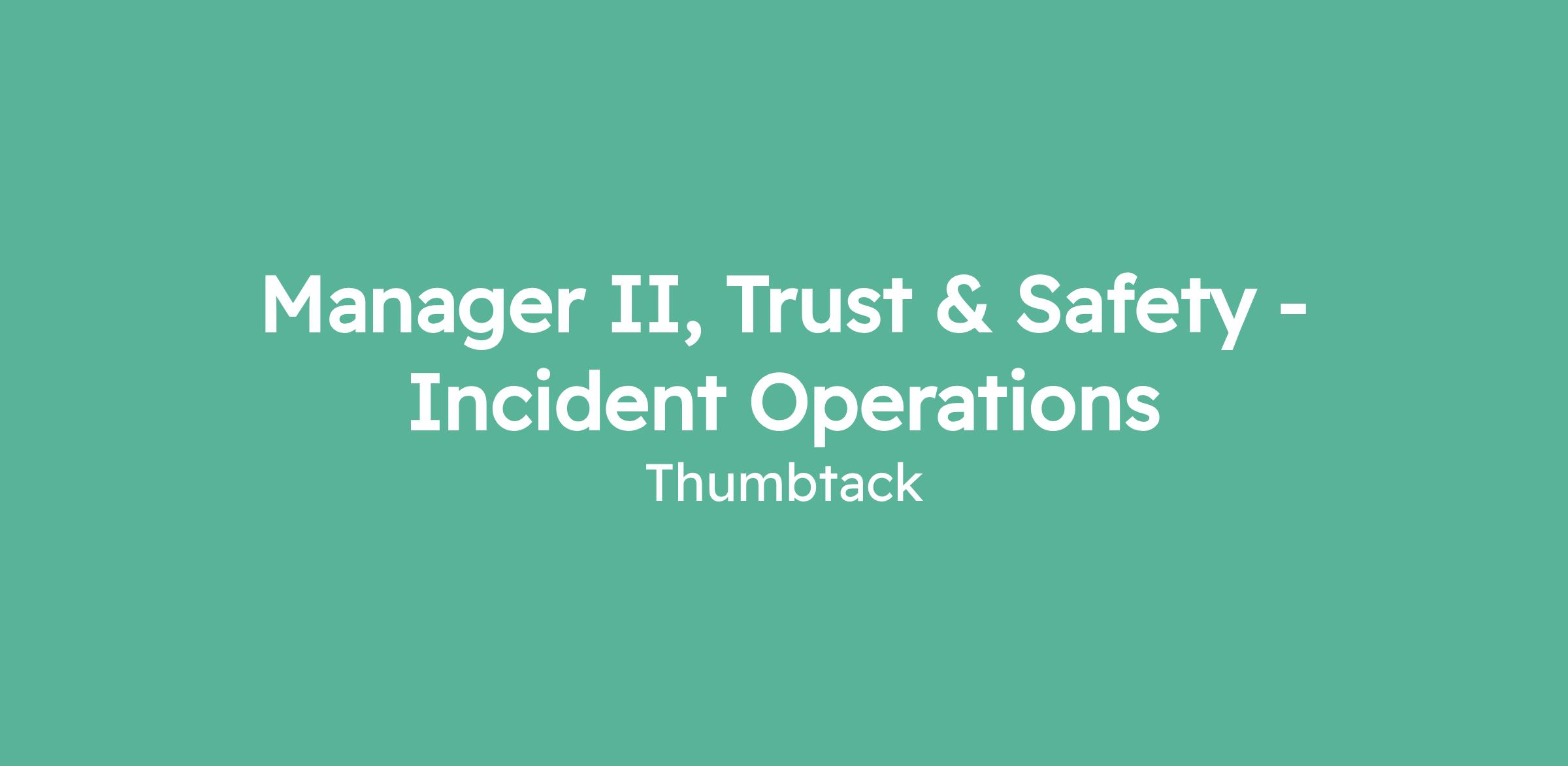 Manager II, Trust & Safety - Incident Operations