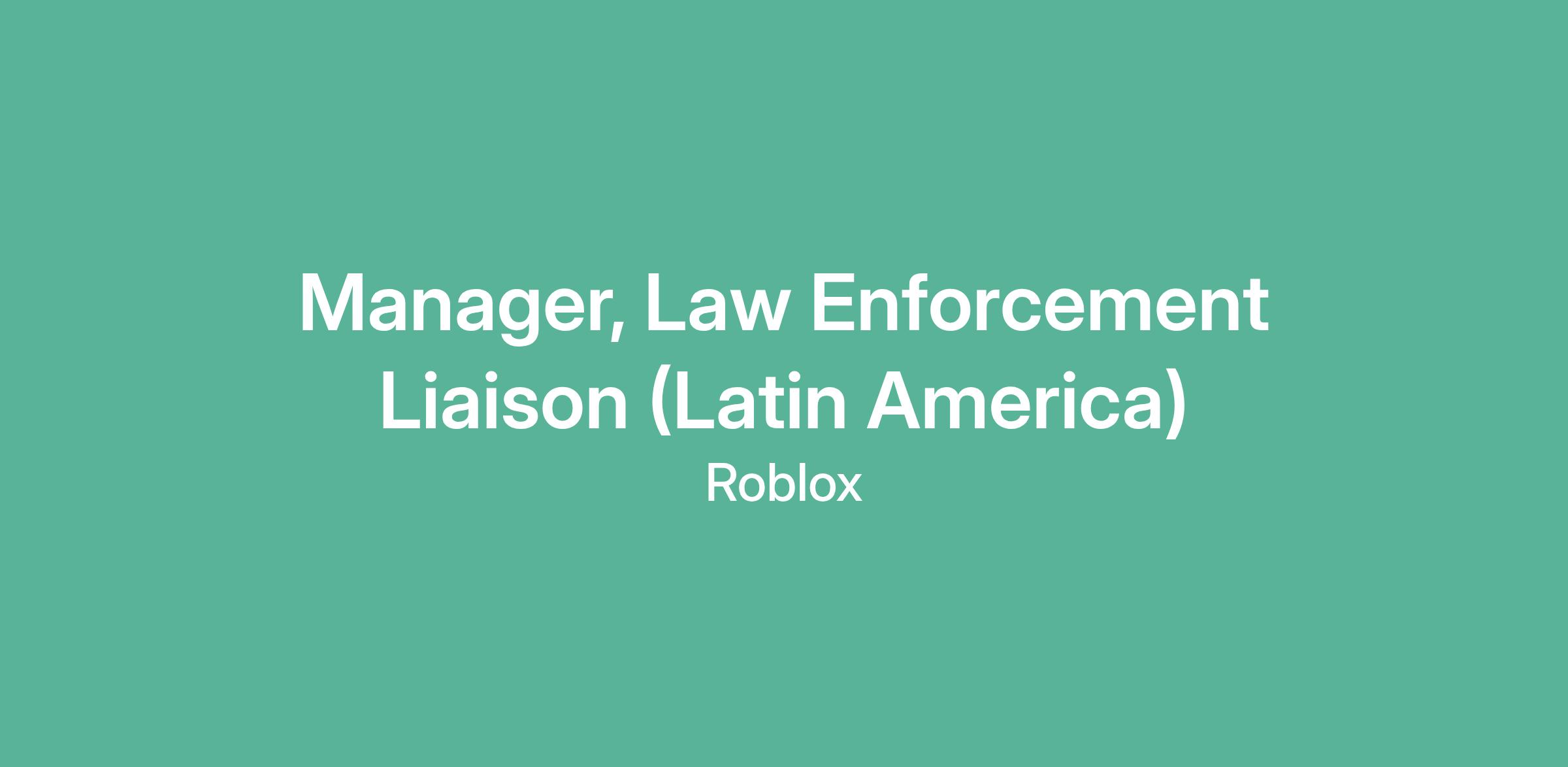 As a Law Enforcement Liaison Manager, you’ll develop and advance strategic law enforcement relationships with special focus on law enforcement in Latin America, while also supporting internal platform safety efforts that elevate the Roblox safety ecosystem. The ideal candidate will be a versatile, self-driven, team-player who enjoys context-switching across high-profile initiatives, and is uniquely motivated by Roblox’s mission of connecting a billion people with optimism and civility. From serving as an external representative of Roblox with global law enforcement agencies, to collaborating cross-functionally with our Legal & Advocacy, Safety, Product, and Communications teams (among others), you will have a diverse set of responsibilities in furtherance of assisting global law enforcement, educating external stakeholders on digital safety, and ultimately helping keep users safe on Roblox.