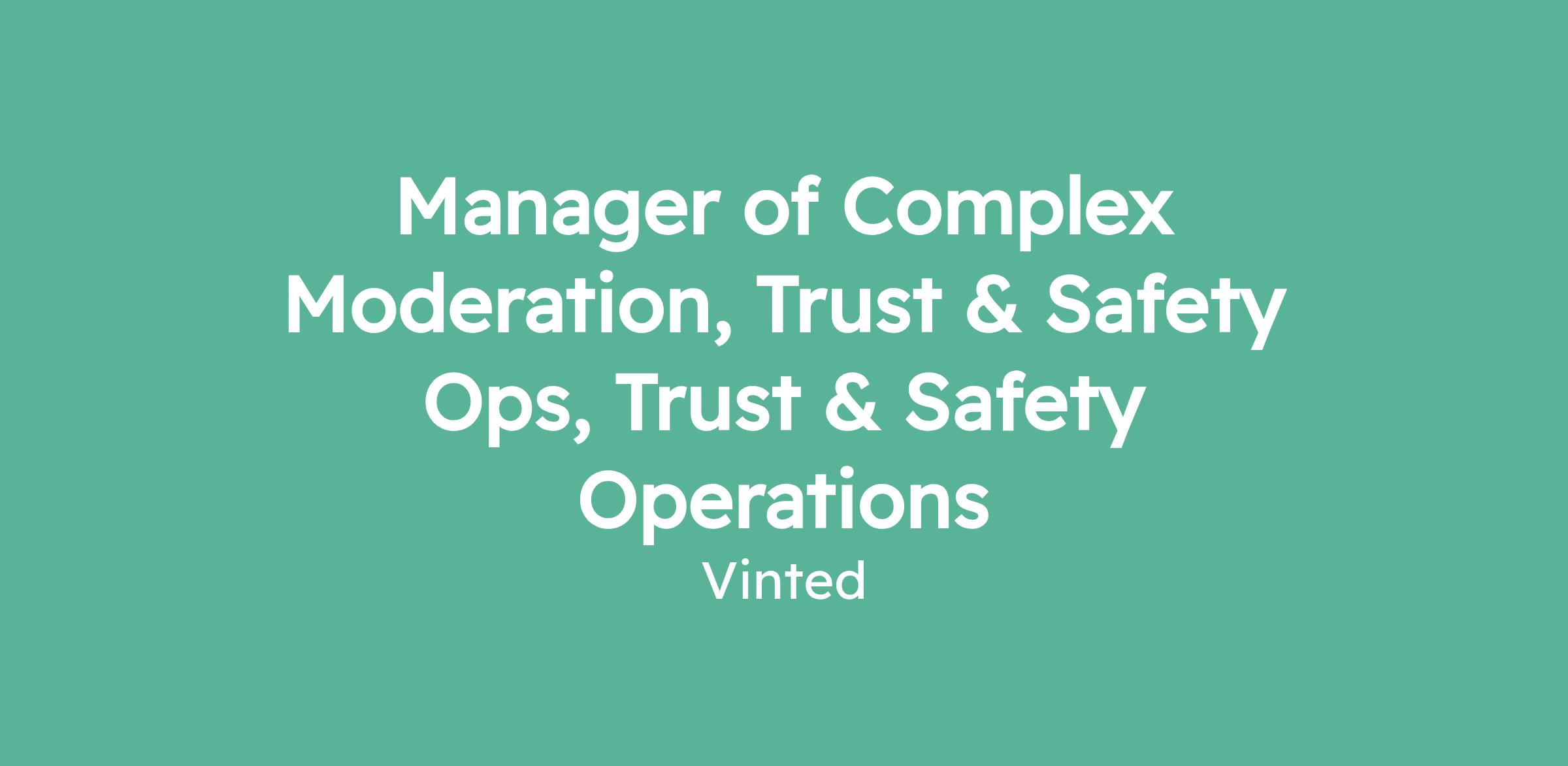 Manager of Complex Moderation, Trust & Safety Ops, Trust & Safety Operations