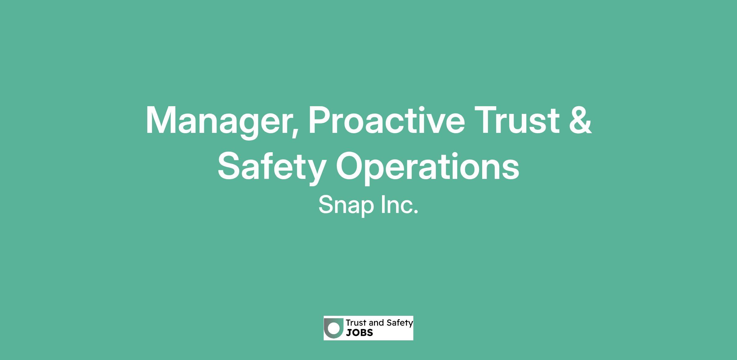 We’re looking for a Manager to join Team Snap’s growing Proactive Trust & Safety Operations team! You will be expected to oversee components of Snap’s proactive harm and abuse detection framework and to flex in to support the larger T&S team as needed. We are looking for someone who is able to keep a cool head under pressure, and is excited about cross-functional work with our Policy, Product and Engineering teams, building and improving processes, and taking a hands-on, innovative approach to helping keep Snapchatters safe. You will become a subject matter expert in Snap’s proactive detection tools and services, and own projects from start to finish.