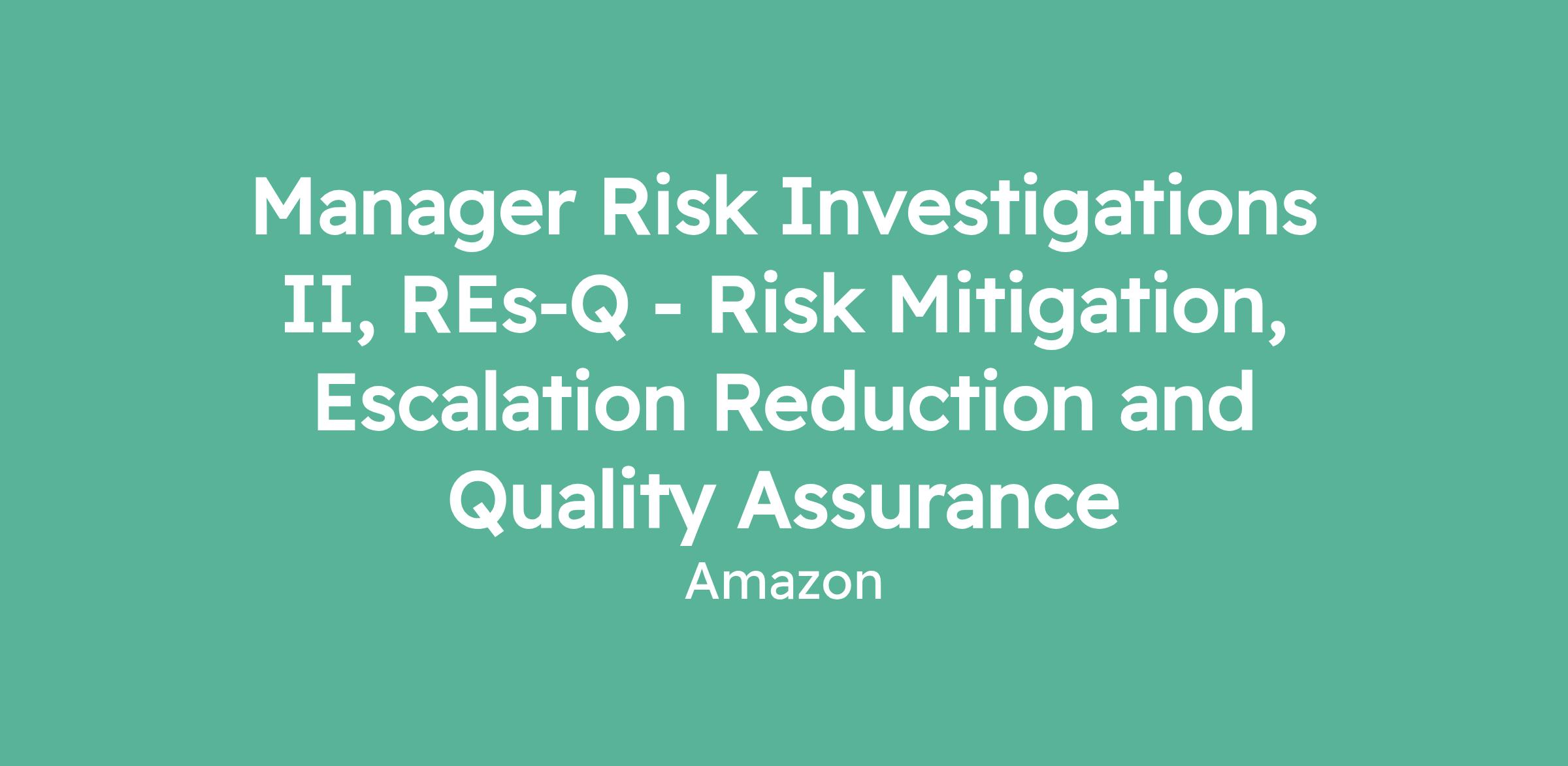 Manager Risk Investigations II, REs-Q - Risk Mitigation, Escalation Reduction and Quality Assurance