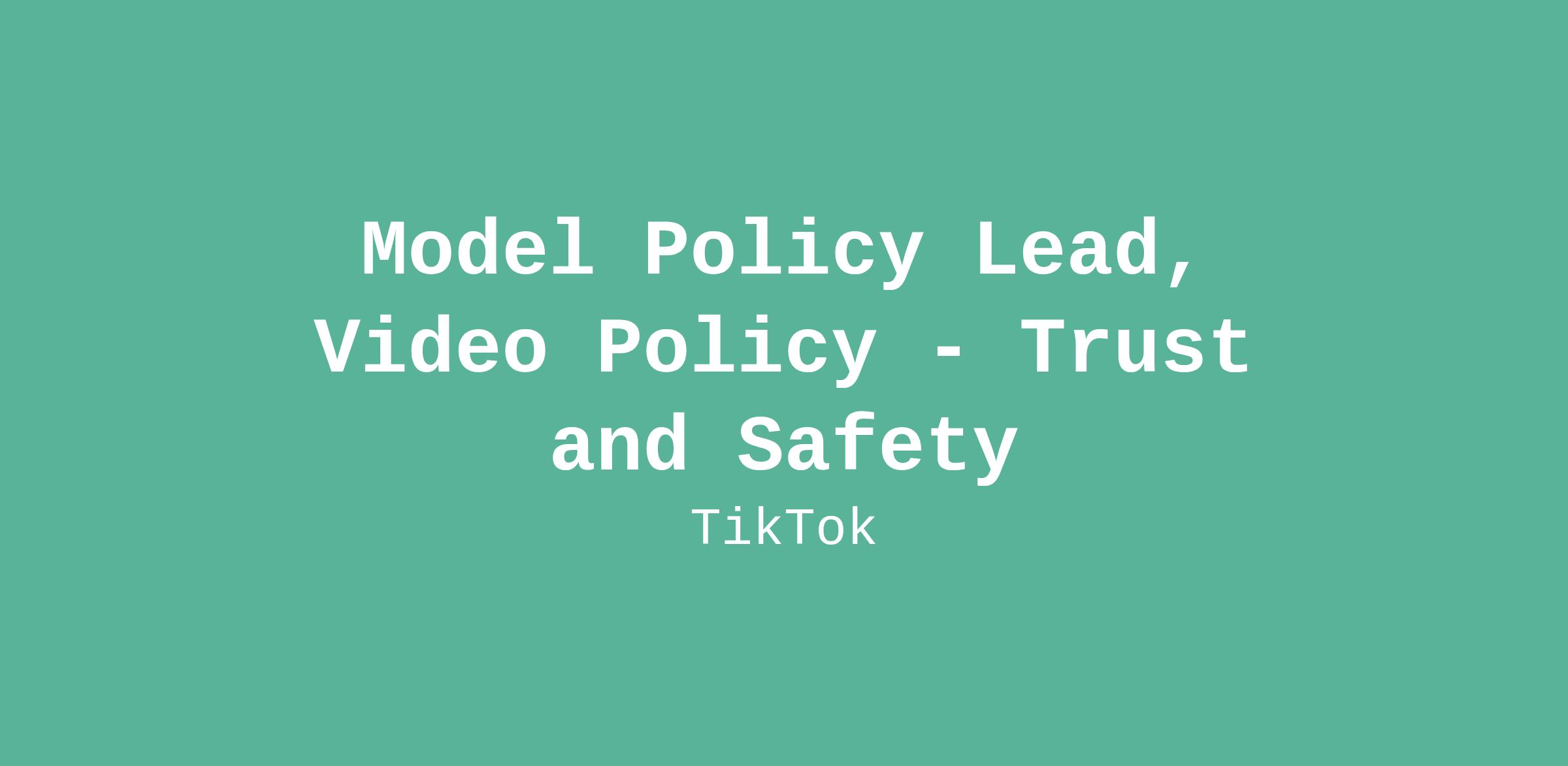 Model Policy Lead, Video Policy - Trust and Safety