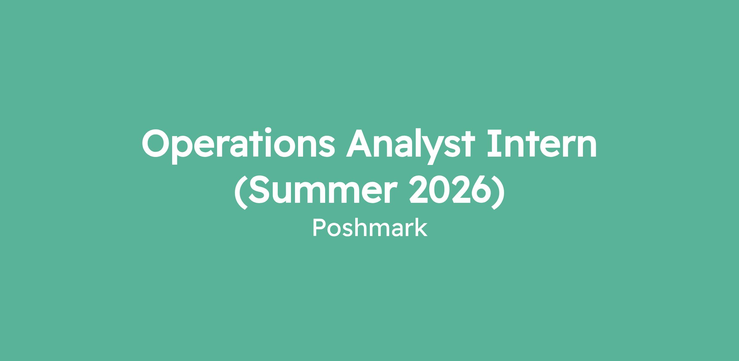 Operations Analyst Intern (Summer 2026)