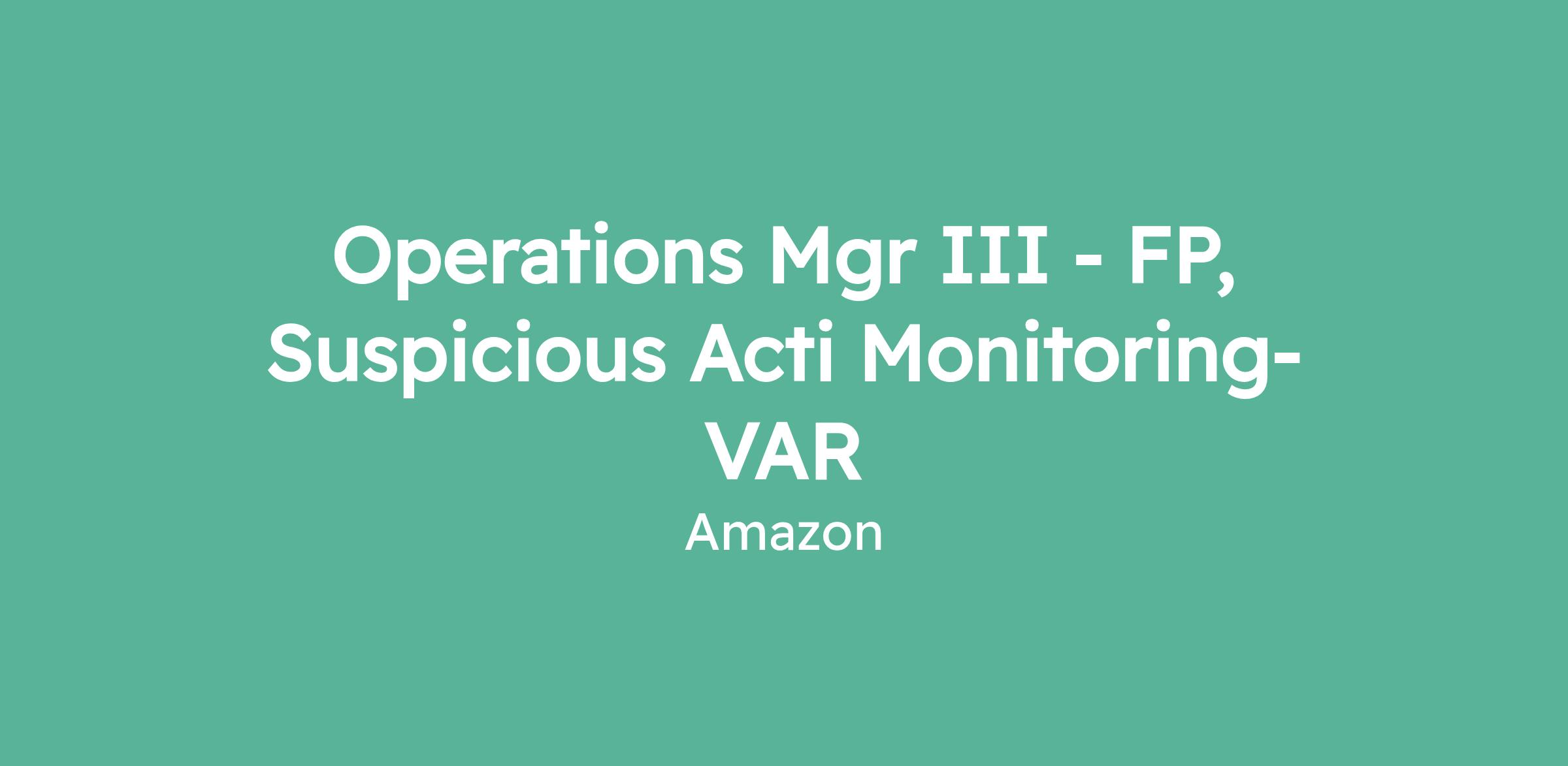 Operations Mgr III - FP, Suspicious Acti Monitoring-VAR