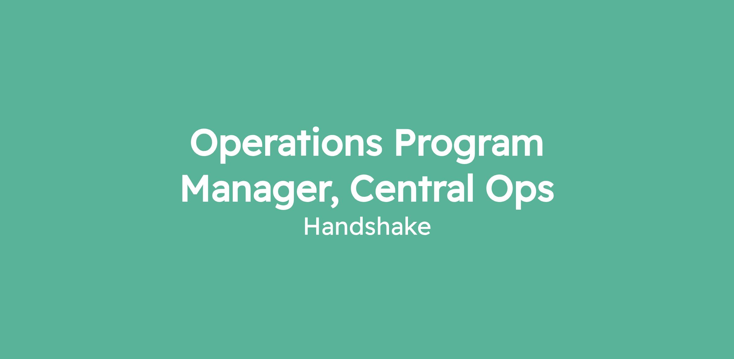 Operations Program Manager, Central Ops