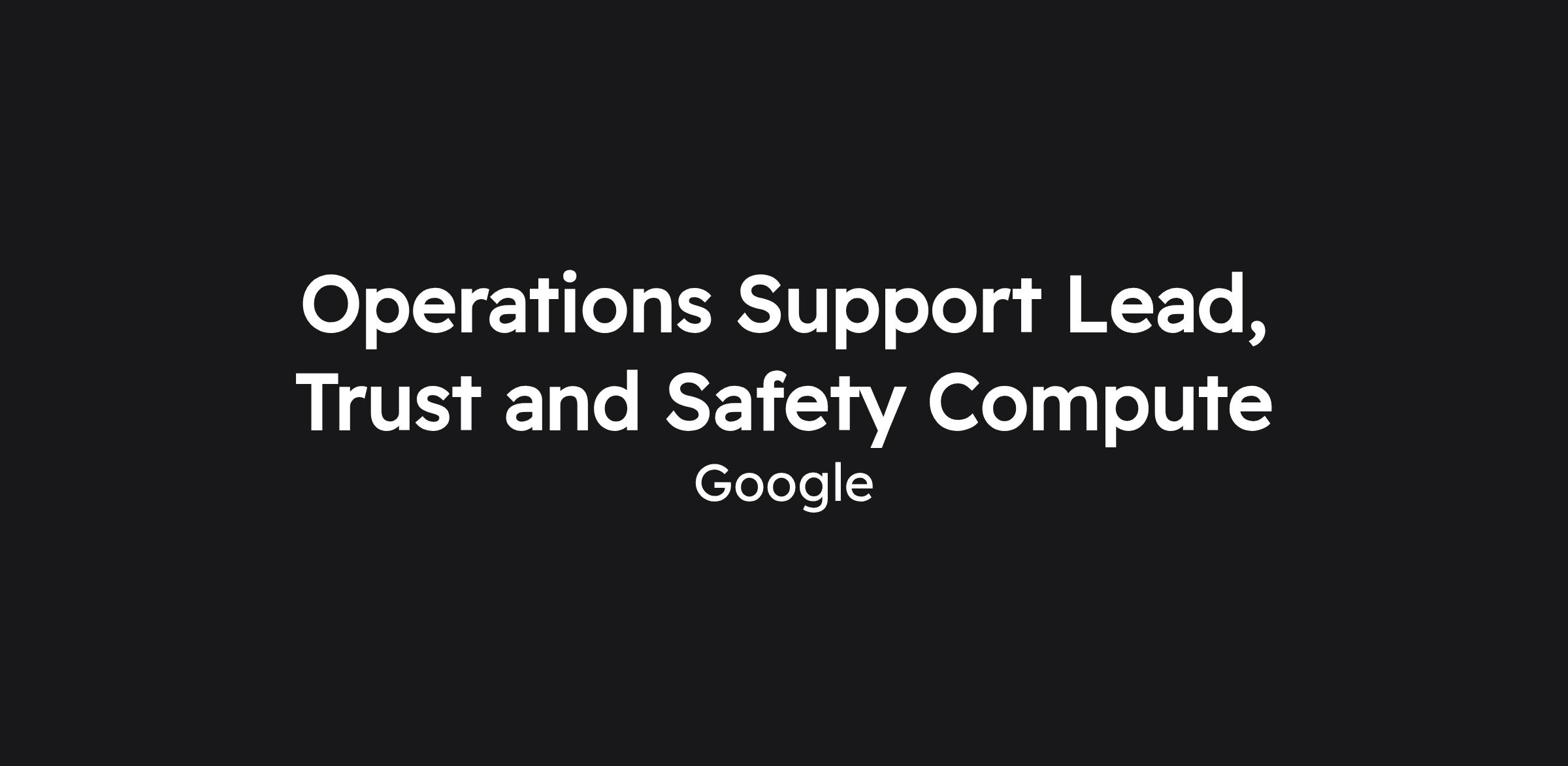 Operations Support Lead, Trust and Safety Compute