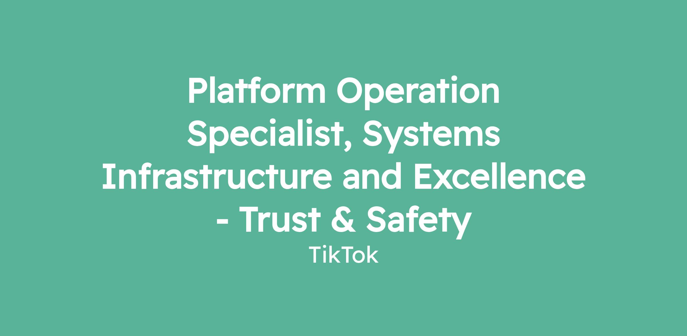 Platform Operation Specialist, Systems Infrastructure and Excellence - Trust & Safety