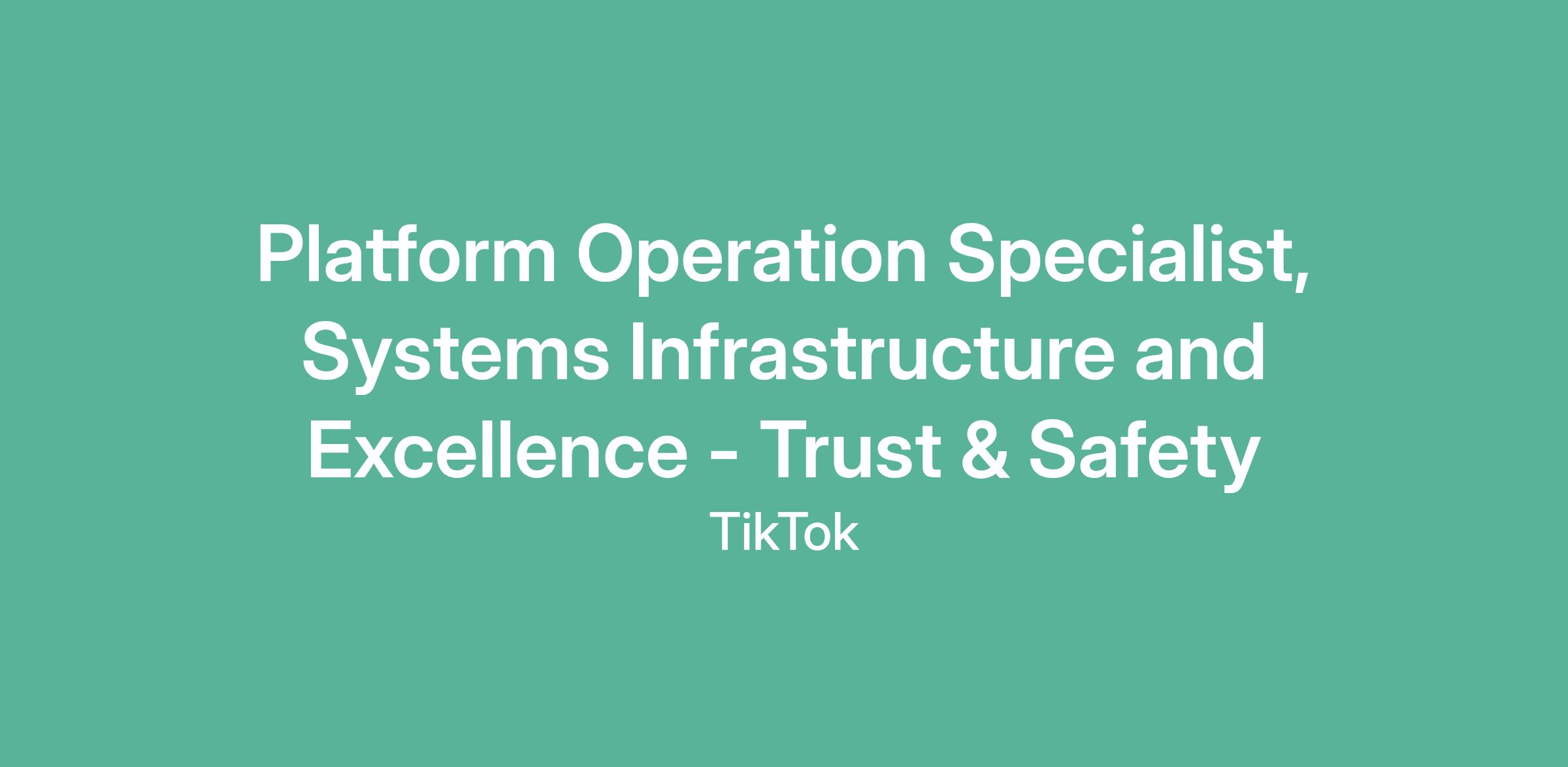 Platform Operation Specialist, Systems Infrastructure and Excellence - Trust & Safety