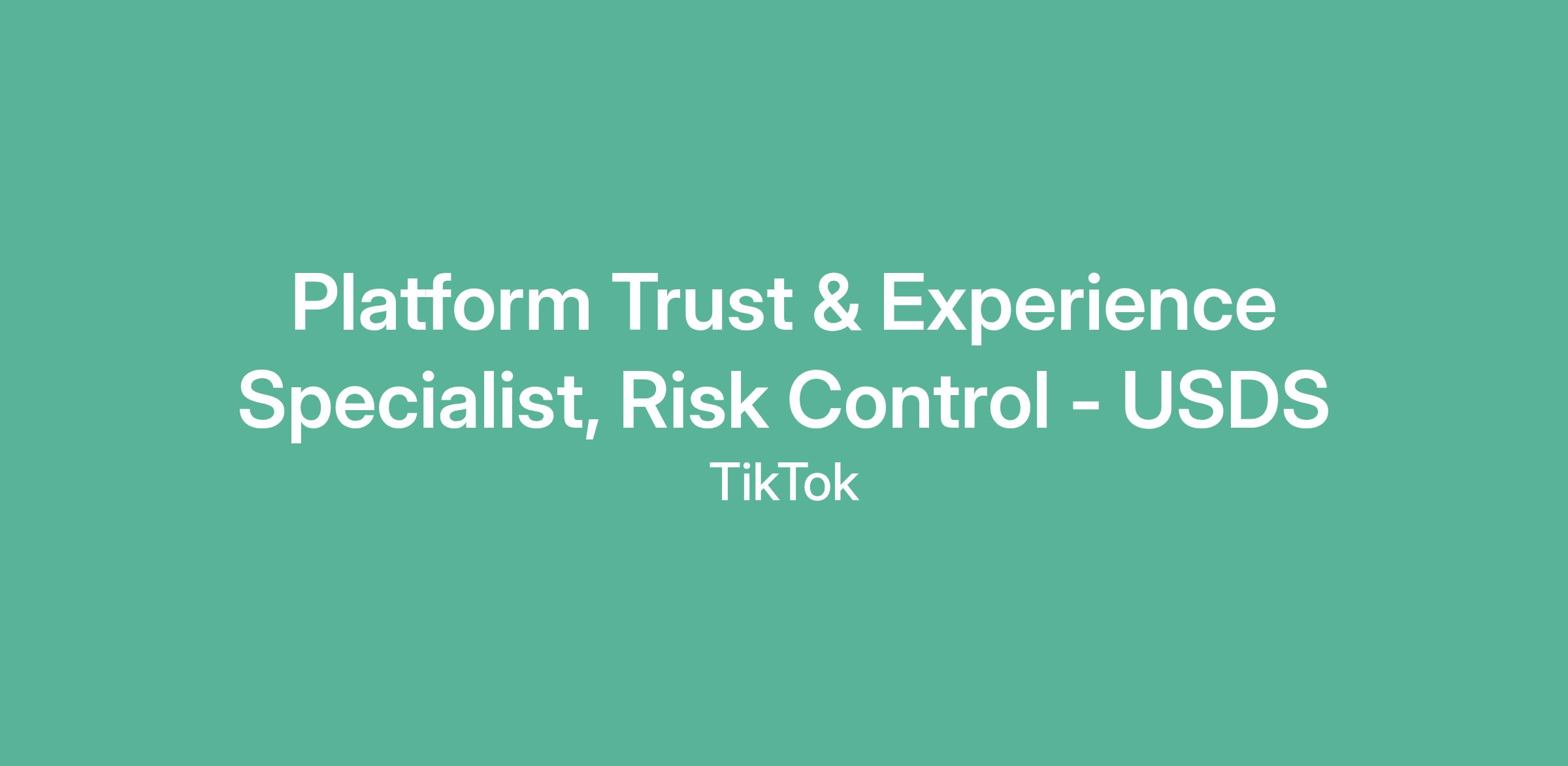 Platform Trust & Experience Specialist, Risk Control - USDS