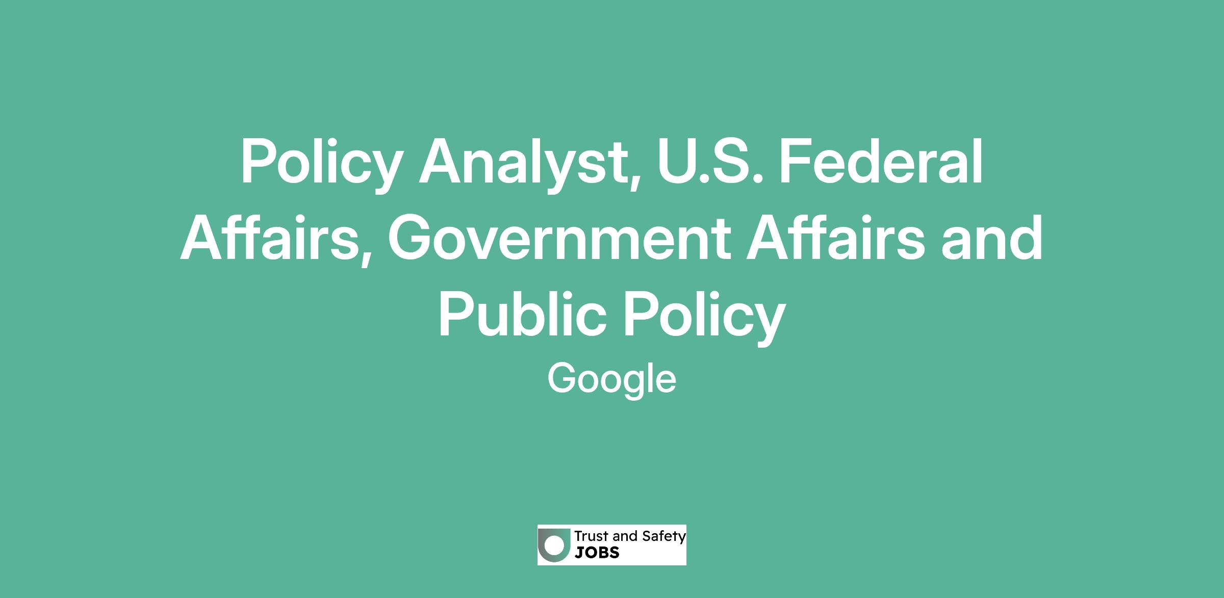 Policy Analyst, U.S. Federal Affairs, Government Affairs and Public Policy