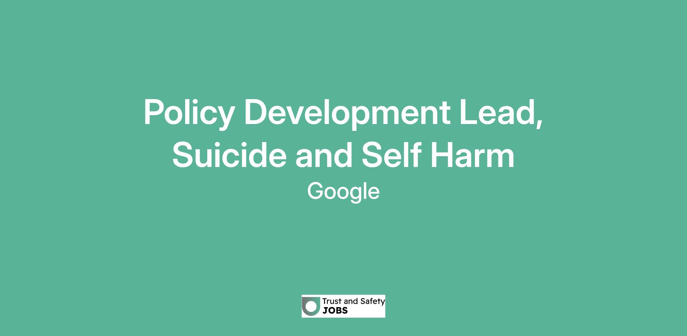 Policy Development Lead, Suicide and Self Harm